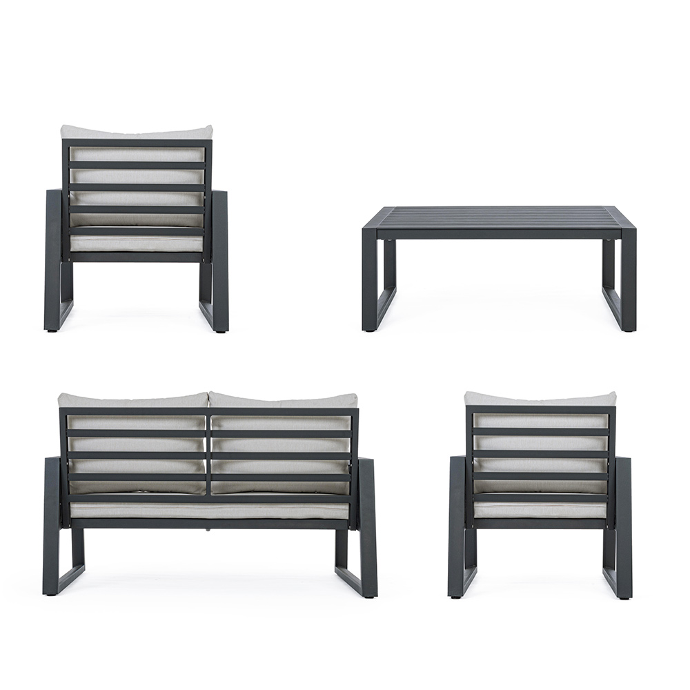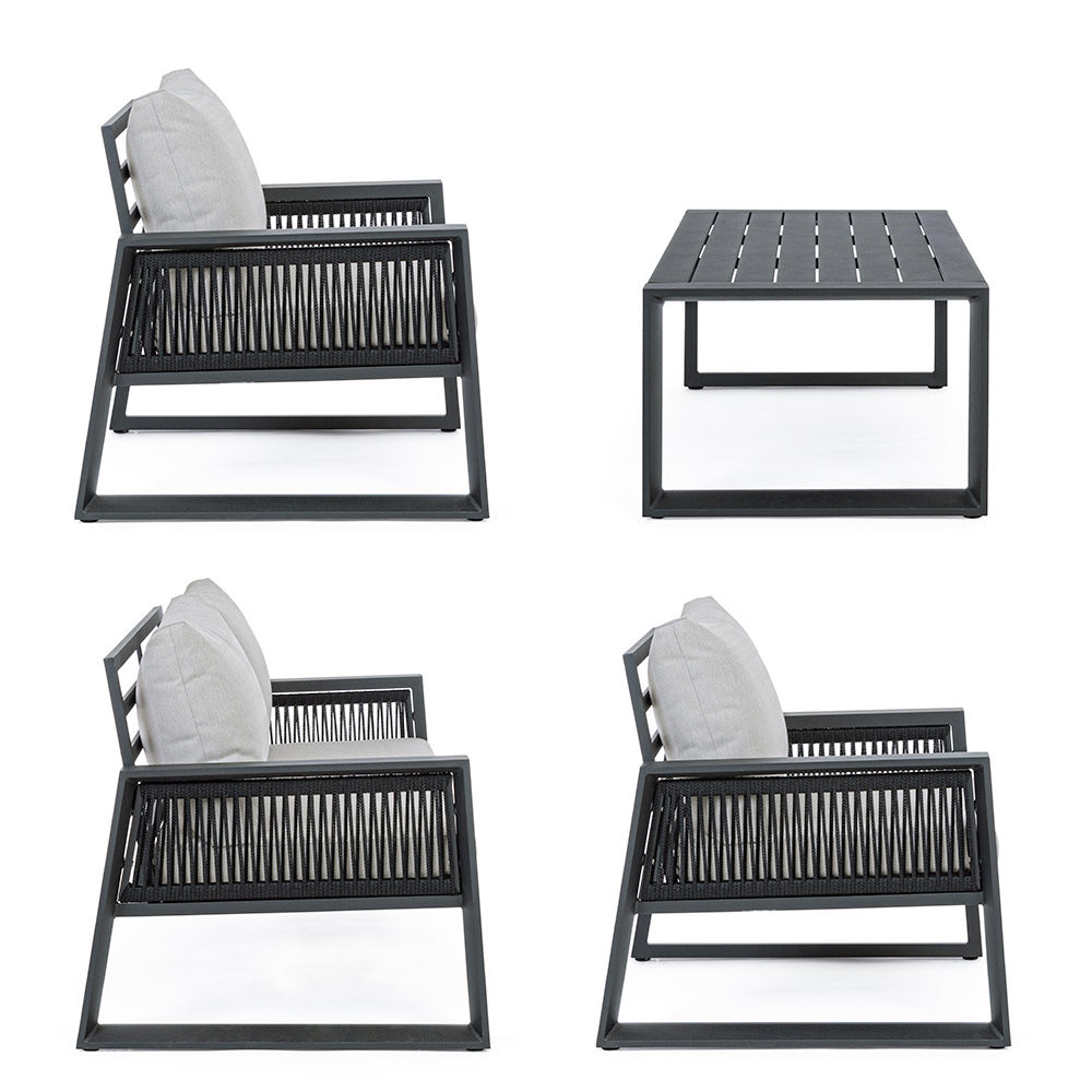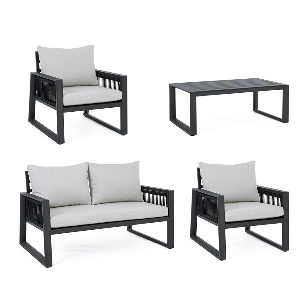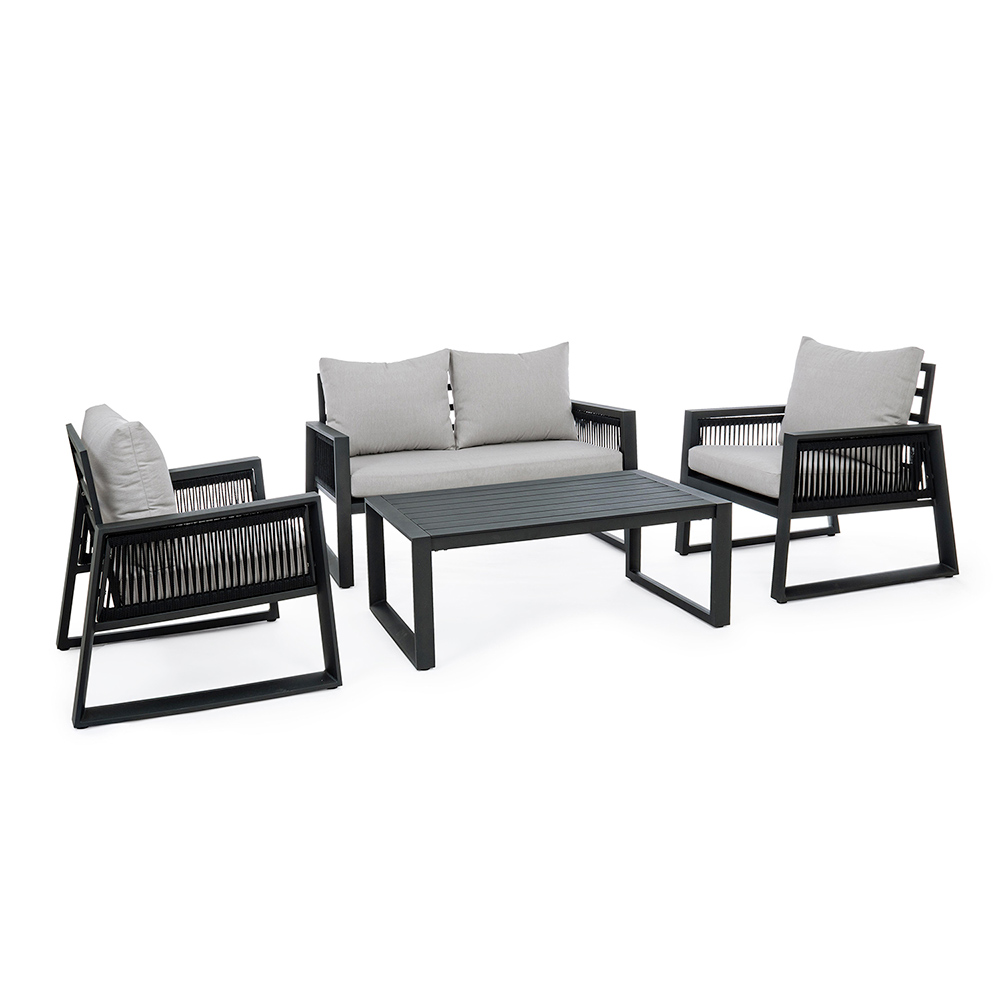 | Maatregelen | Fauteuil: B71 x D78 x H 74,5 x H zitting 41 x H armleuningen 56 cm; Bank: L130 x P78 x H 74,5 x H zitting 41 x H armleuningen 56 cm; Salontafel: L110 x D 60 x H40 cm |