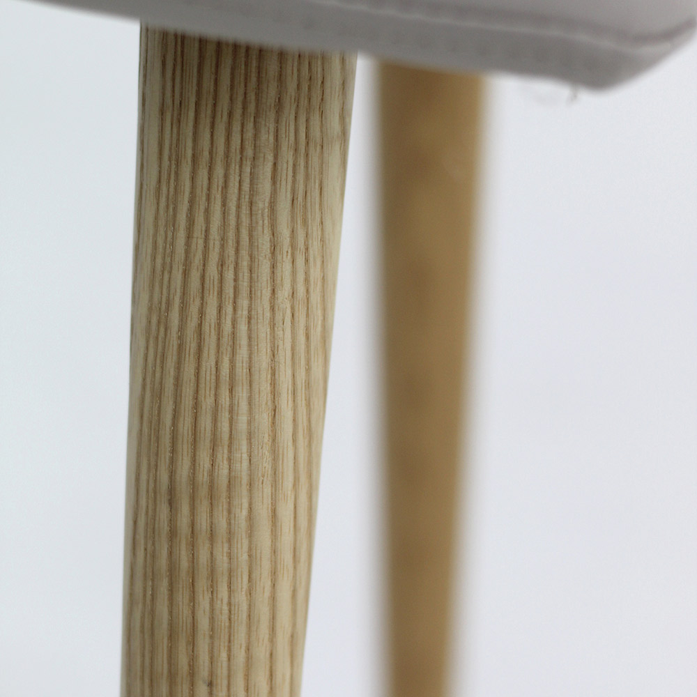 - Zitting in wit eco-leer - Poten in natuurlijk massief hout