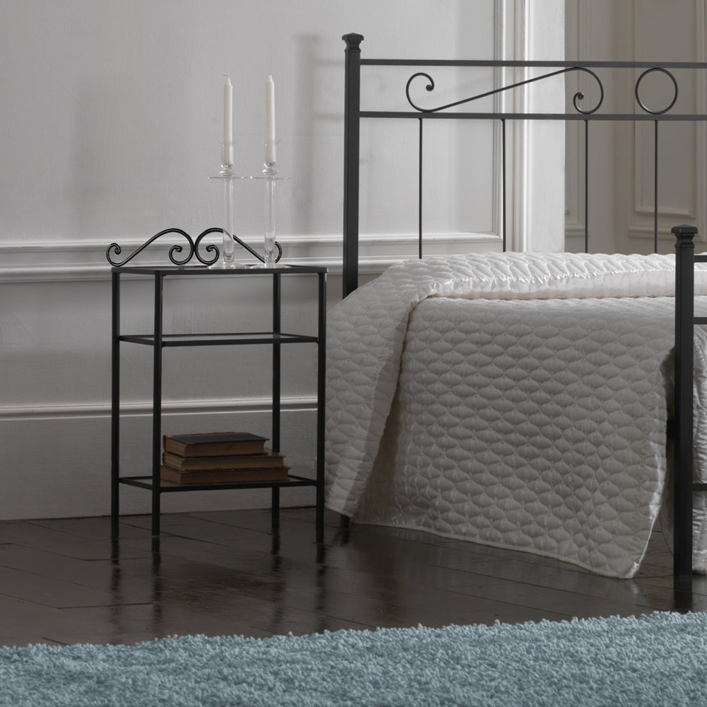 Tweepersoonsbed met ijzeren hoofdeinde en 2 nachtkastjes Made in Italy