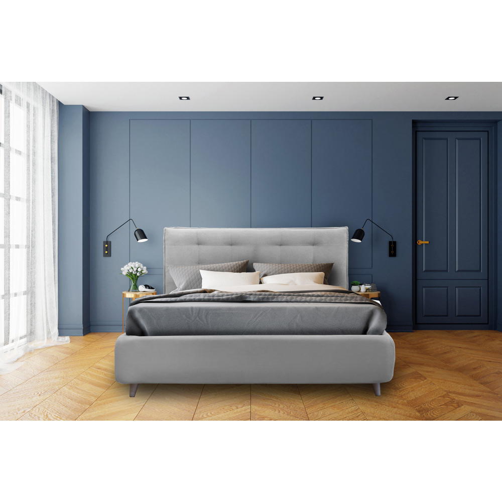 Model zonder ringcontainer: gewatteerd bedframe met ondersteunde basis inbegrepen en comfortabele voet van 11 cm hoog die schoonmaken onder de structuur mogelijk maakt.