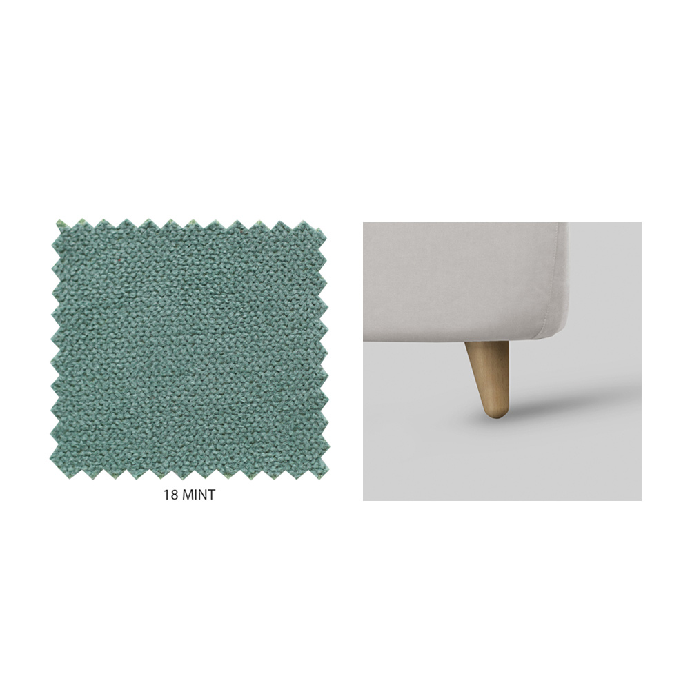 - mintkleurige stof met natuurlijke houten voetjes