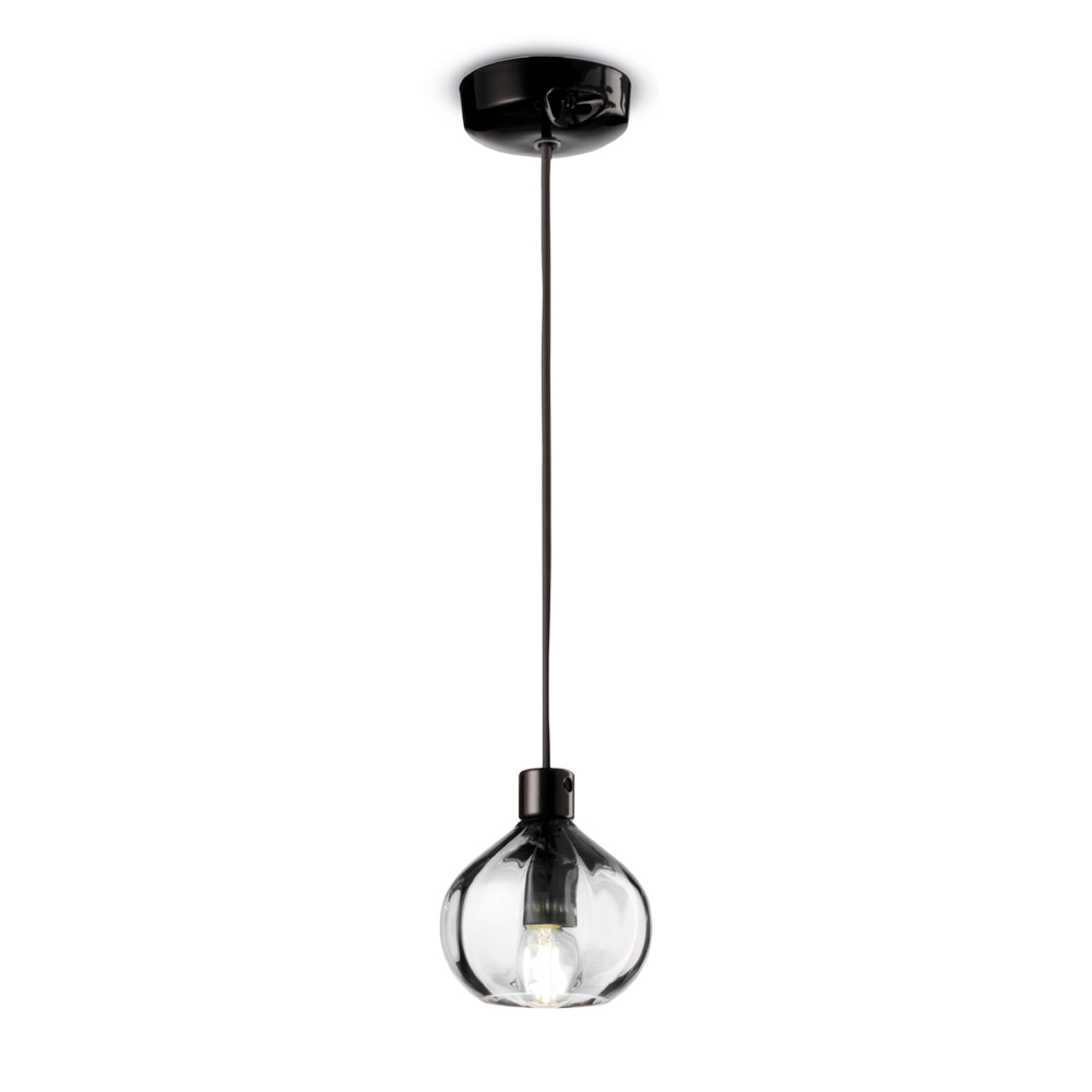 Deze hanglamp is de essentie van transparantie met een vleugje moderniteit. Glas, met zijn pure en tijdloze aard, wordt hier gevormd tot een bol die licht opvangt en reflecteert, waardoor een spel van helderheid en schaduwen ontstaat dat dynamiek aan de omgeving toevoegt. De amberkleurige versie, met zijn warme en uitnodigende tint, is perfect voor het creëren van een intieme en ontspannen sfeer. De transparante variant straalt echter een kristallijn licht uit, ideaal om te verlichten met een vleugje minimalistische klasse.