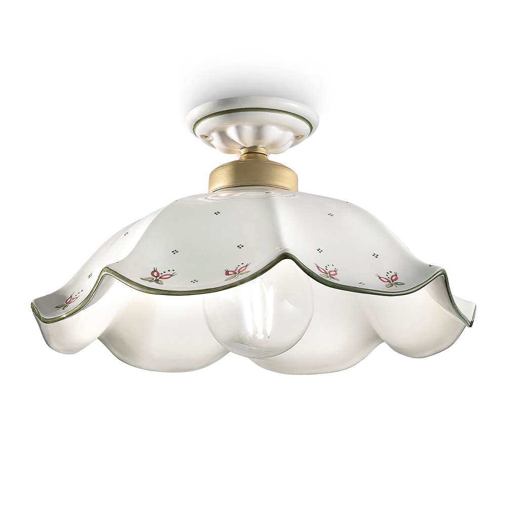 Vintage handbeschilderde golvende keramische plafondlamp gemaakt in Italië door Ferroluce.