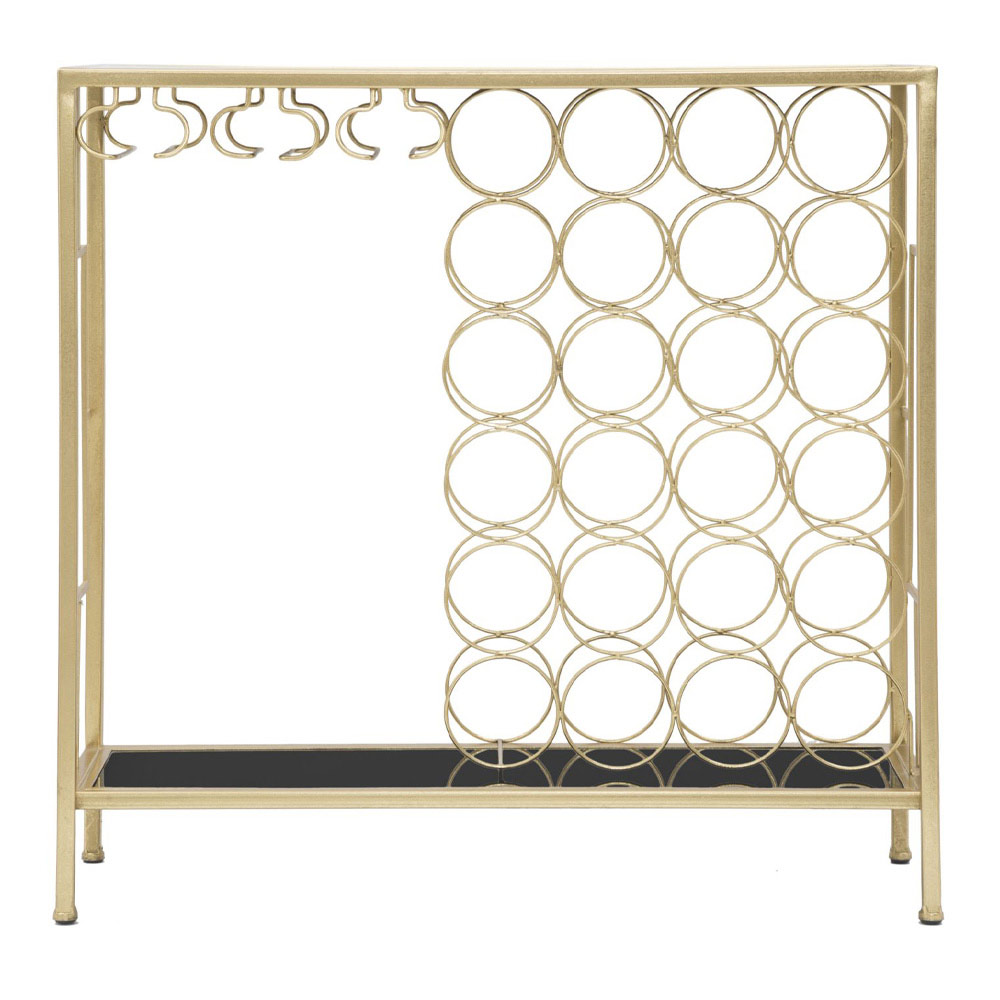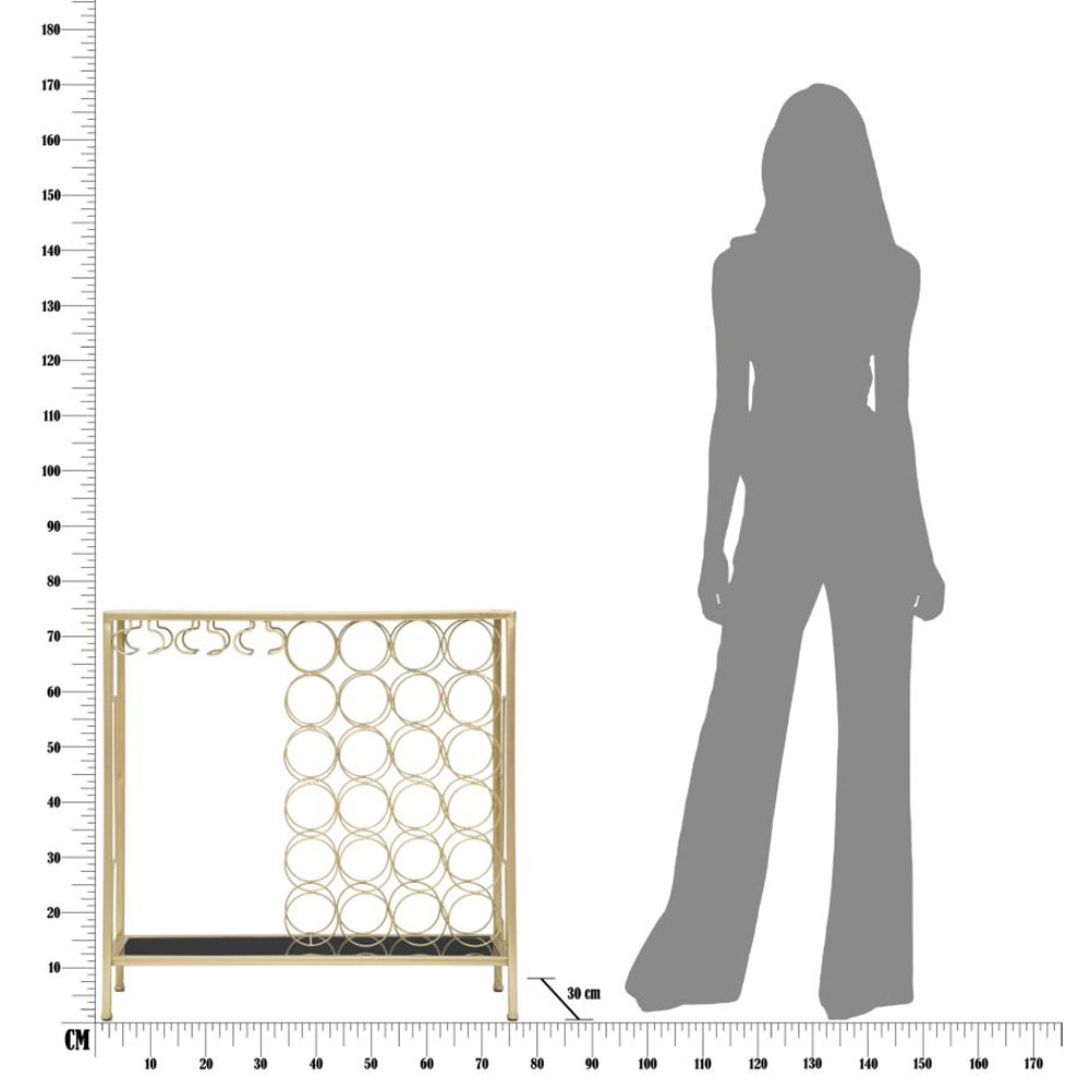 Console met flessenhouder met gouden afwerking ijzeren structuur en echt zwarte bovenkant . Een modern en elegant meubelstuk dat de functionaliteit van een flessenhouder en die van een toegangsconsole combineert, waardoor dit product uniek en exclusief is . De prachtige combinatie van de gouden afwerking van de structuur en het zwarte glas geeft de console een verfijnde en stijlvolle touch, waardoor het een ideale oplossing is voor hedendaagse woonomgevingen.