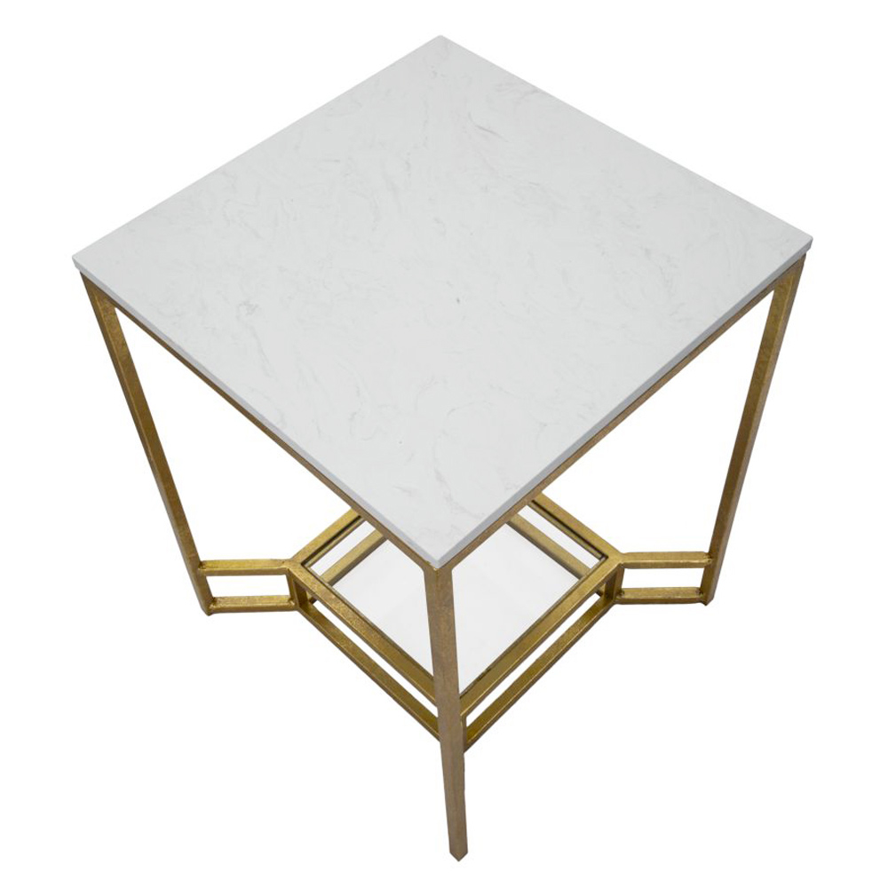 Salontafel met een ijzeren structuur met gouden afwerking, verrijkt met een glazen inzetstuk en een blad van hars met wit marmereffect . Een aanvulling die elegantie en functionaliteit combineert voor een optimaal resultaat dat kan fungeren als een praktisch steunvlak en tegelijkertijd als een origineel decoratief element voor de woonkamer. Het ontwerp wordt onderbroken door eenvoudige geometrische lijnen die het bijzonder veelzijdig maken en daarom ideaal om lounges met een verfijnde stijl te vervolledigen voor een exclusieve en verfijnde inrichting met persoonlijkheid.