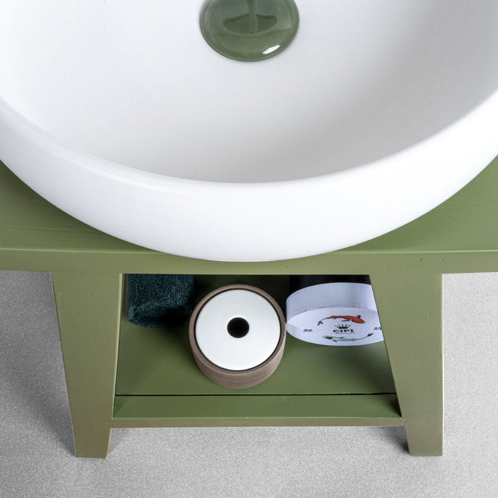 Deze aanvulling op het gebied badkamer wordt gekenmerkt door de puurheid van de lijnen en de zeer verfijnde afwerking en wil het eigentijdse ontwerp van de gerecyclede houtverwerking die in het huis blijft leven, onderstrepen, met exotische geuren en verfijnde sensaties . Het ontwerp stelt je in staat om de vormen te verlichten en je te concentreren op het elementaire, en biedt een kleine meubeloplossing die ideaal is voor het inrichten van kleine ruimtes die een elegante en functionele hoofdrolspeler nodig hebben.