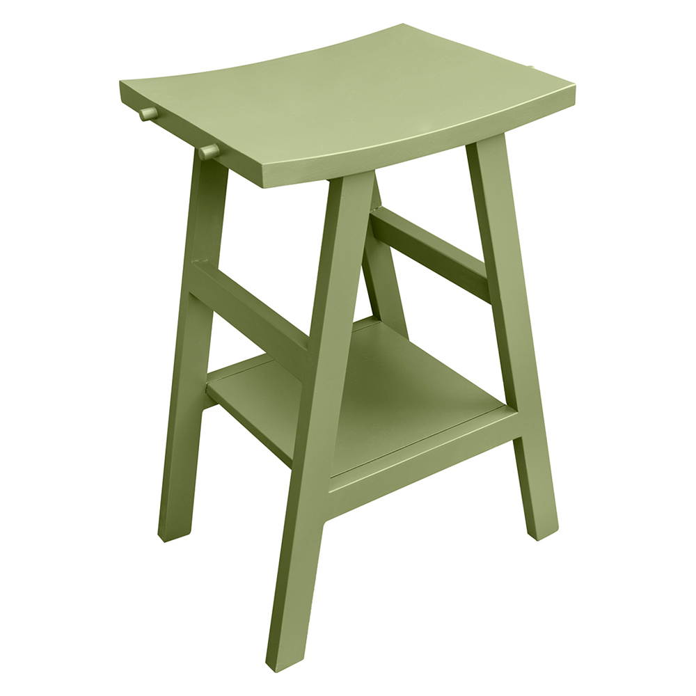 Vrijstaande badkamerkast van natuurlijk gerecycled groen geverfd teakhout, een tint die in elk detail aan het Oosten herinnert. De structuur wordt gekenmerkt door de licht gebogen vorm van het blad dat een exclusieve en verfijnde toets geeft aan de esthetiek van het product. Compleet met 4 praktische handdoekhaken en functionele opbergplank .