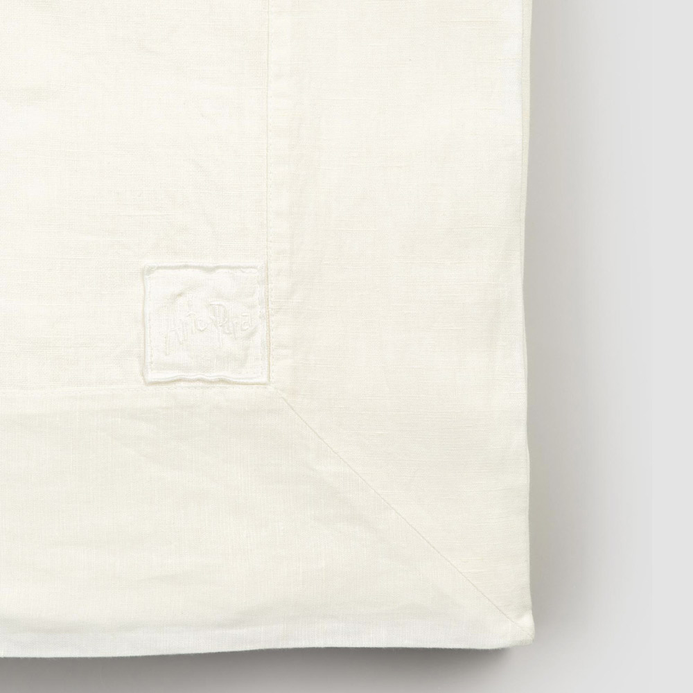 Rechthoekig tafelkleed in natuurlijk wit linnen met ingelijste randen, luxe handgemaakt ontwerp gemaakt in Italië.