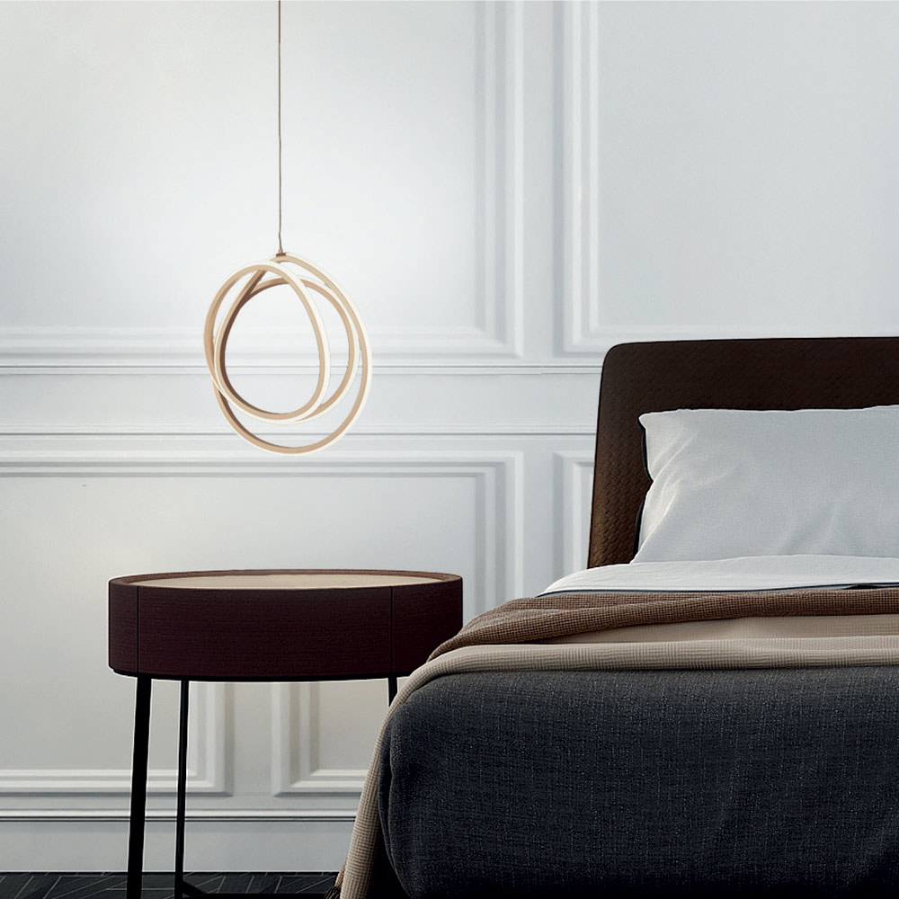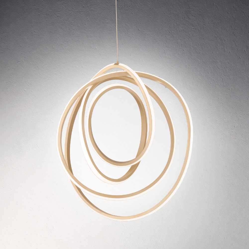 LED hanglamp van goudkleurig metaal met een elegant en luxueus design.