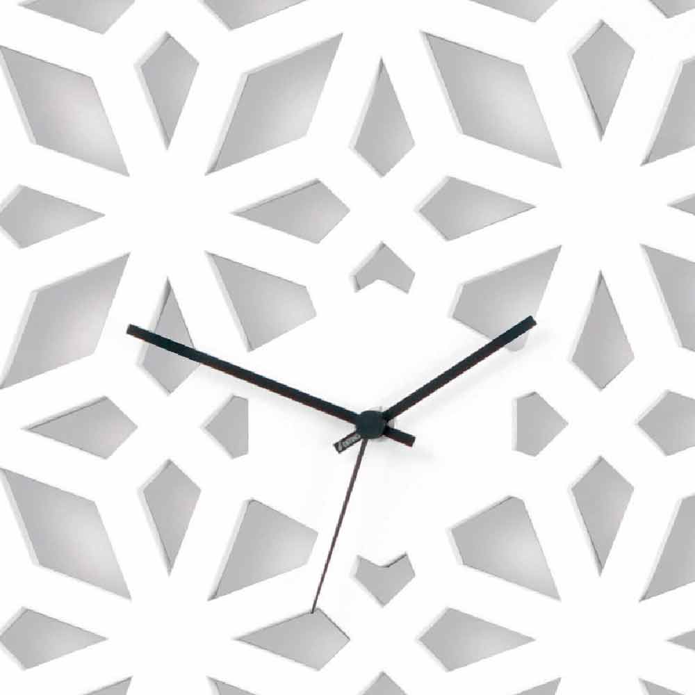 Grote zeshoekige wandklok van modern design in gekleurd hout gemaakt in Italië.