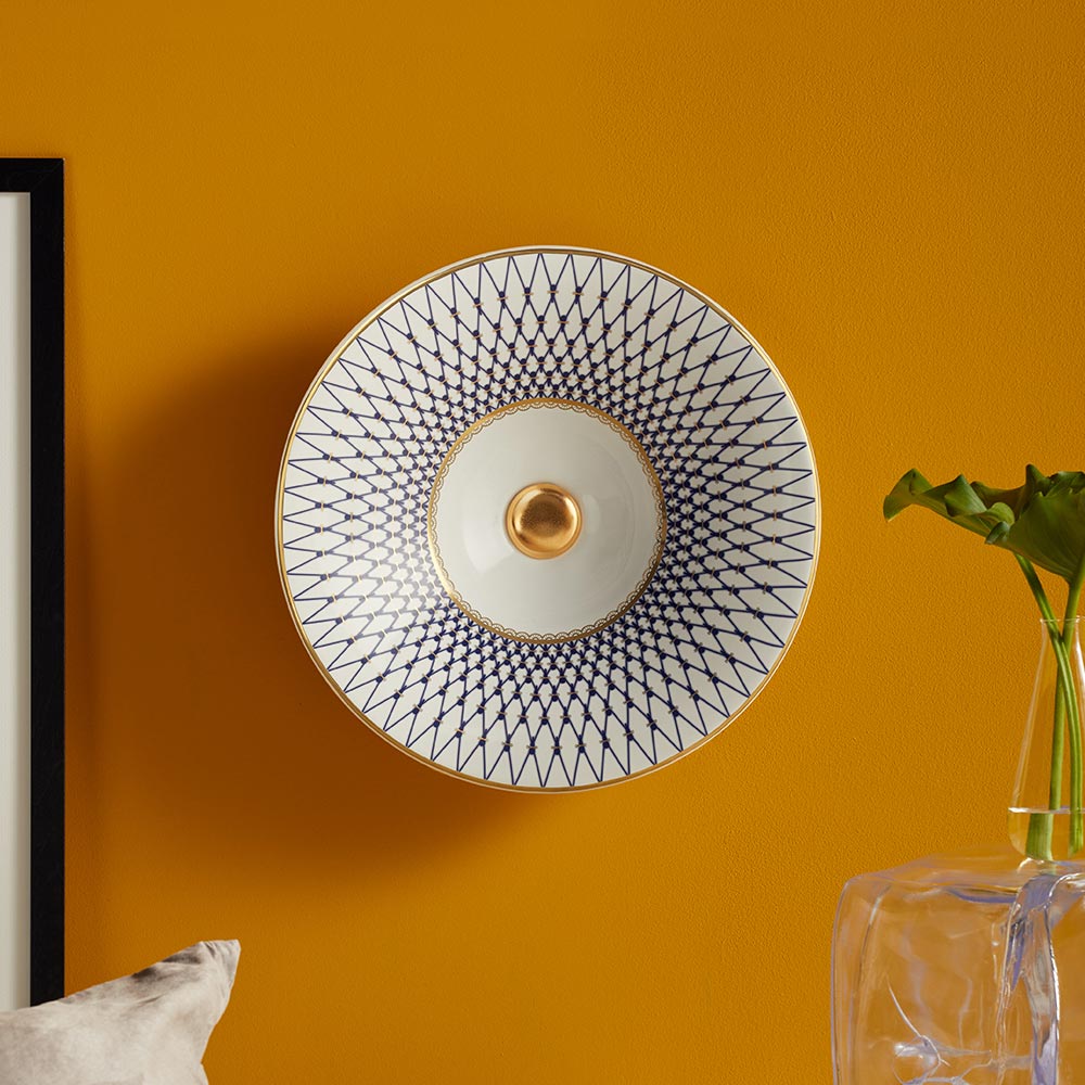 - interne blauwe capitonnée reliëfdecoratie op wit email, externe wit email