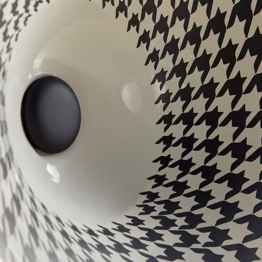 - interne houndstooth-reliëfdecoratie op wit email, externe wit email