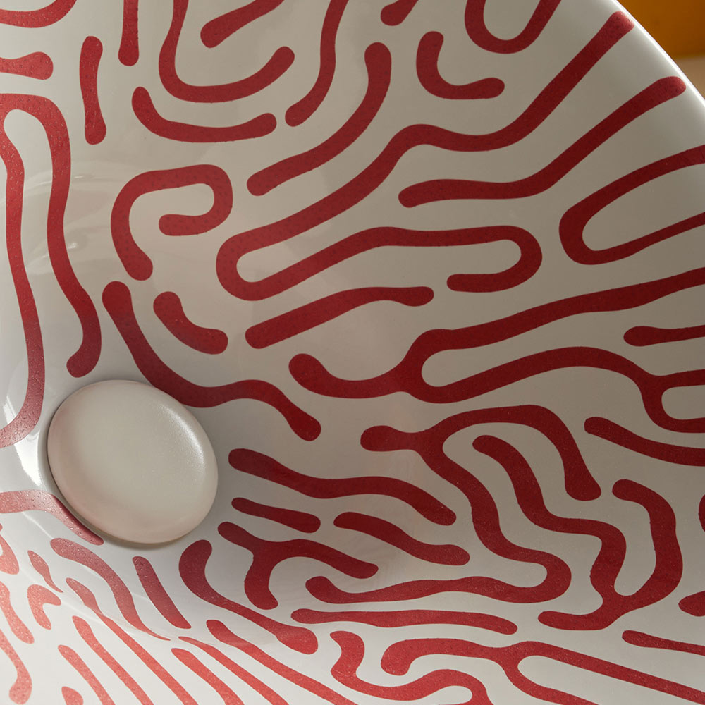 - interne koraalreliëfdecoratie op wit email, externe wit email