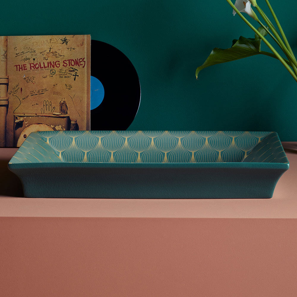 - binnenstructuur in mat smaragd en goud, buitenkant in mat smaragd emaille