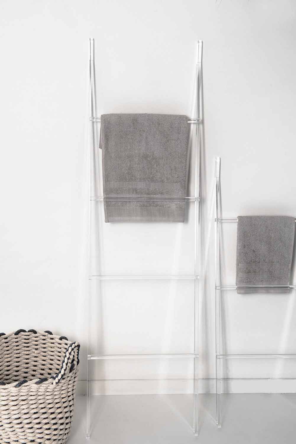 Design handdrogerladder in plexiglas, verkrijgbaar in twee hoogtes in plexiglas gemaakt in Italië.