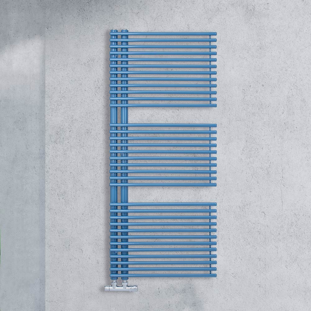 Hybride handdoekverwarmer van koolstofstaal, gemaakt in Italië.