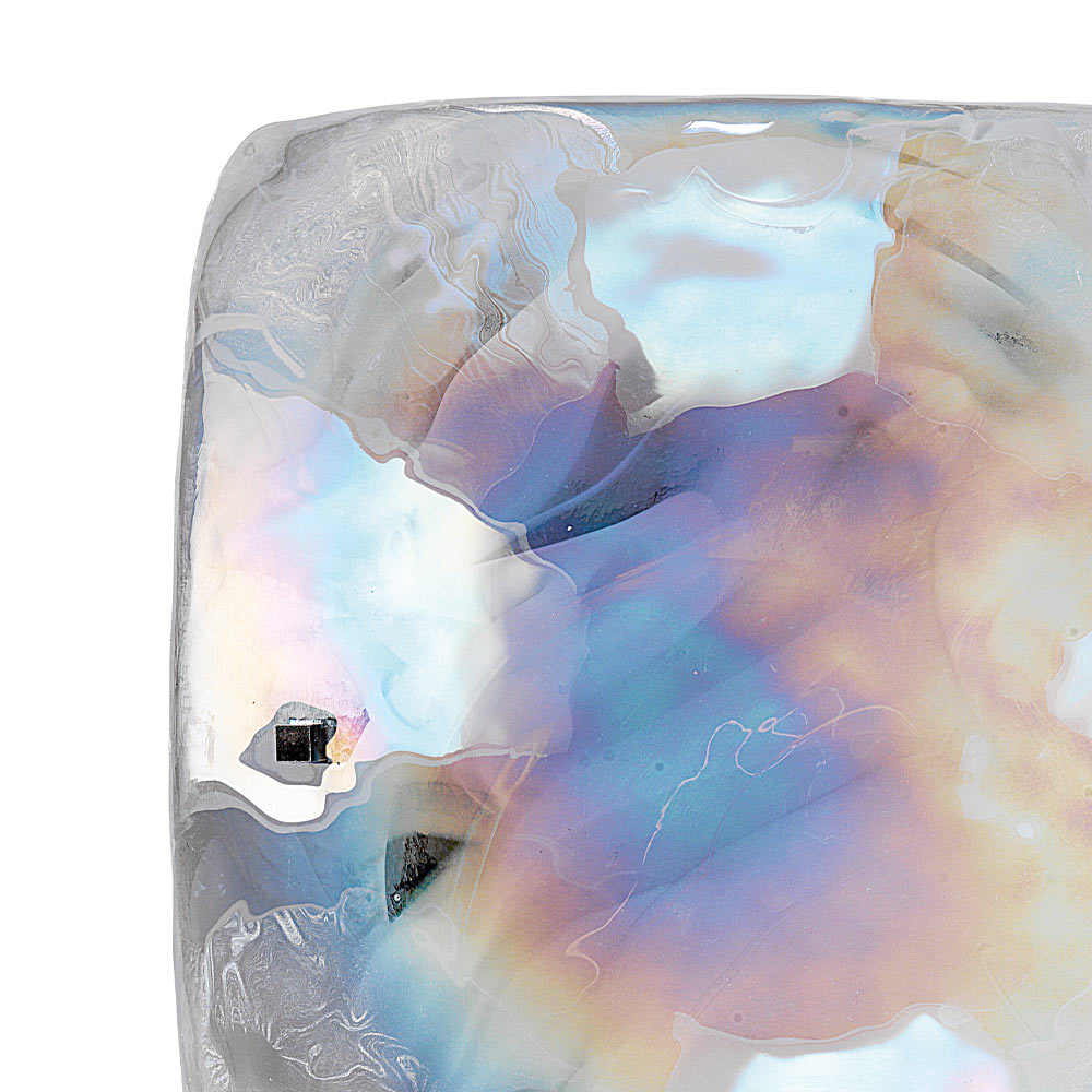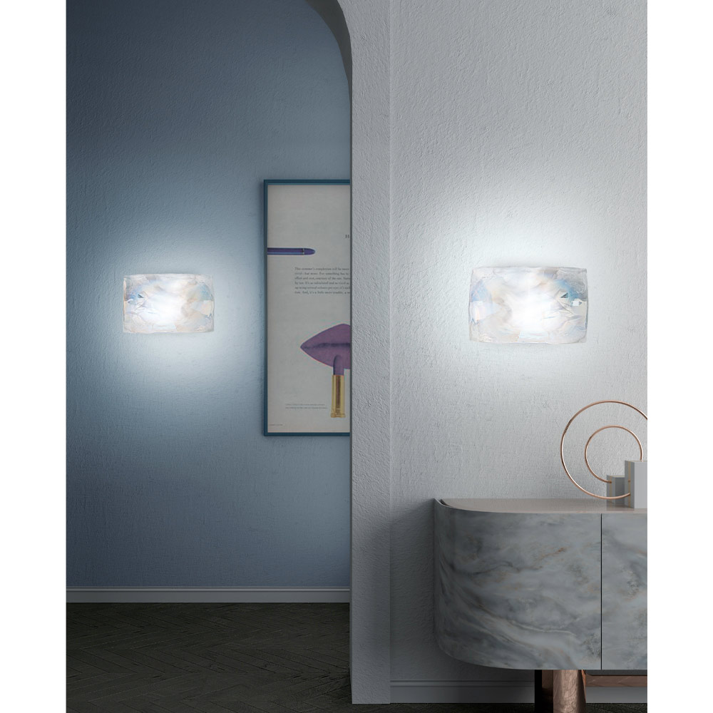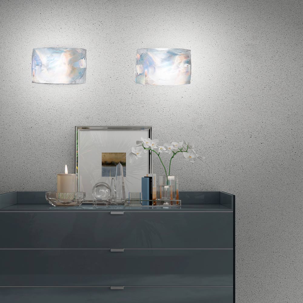 Handgemaakte wandlamp van geblazen Venetiaans glas met irisdecoratie.