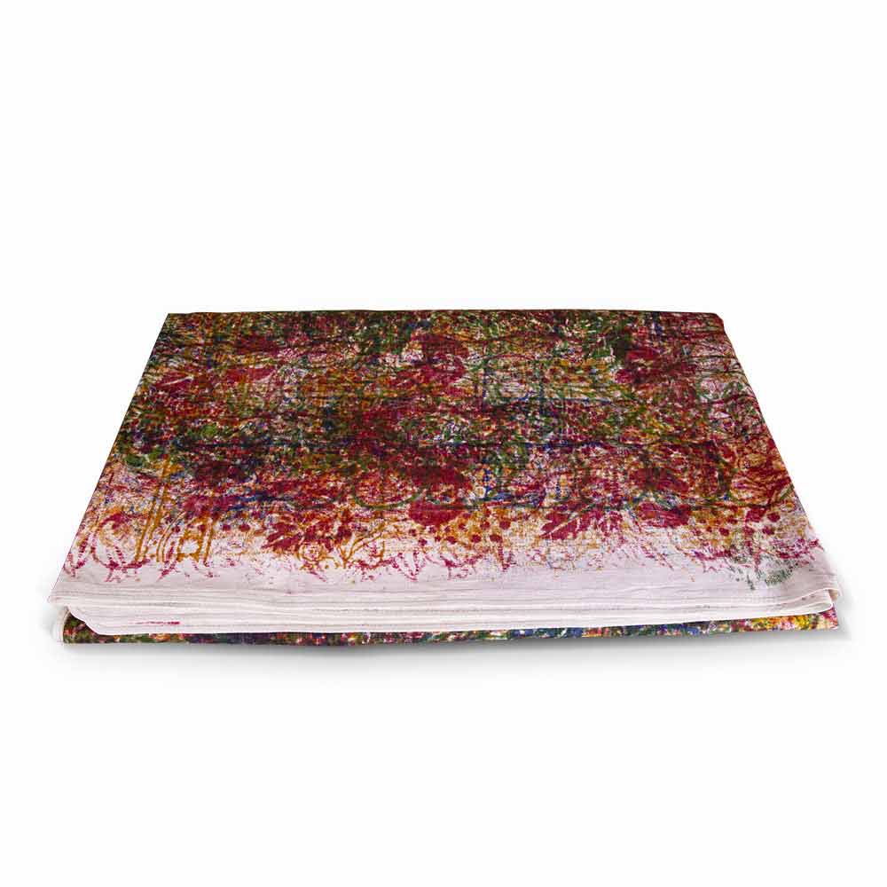 Multifunctioneel tafelkleed (sprei, bankhoes, tafelkleed) groot rechthoekig stuk katoen met handgedrukte gekleurde motieven gemaakt in Italië.