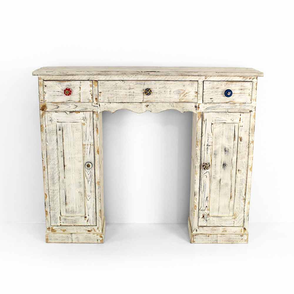 Console in massief dennenhout beschilderd met verouderde witte aarde, luxe artikel Made in Italy.