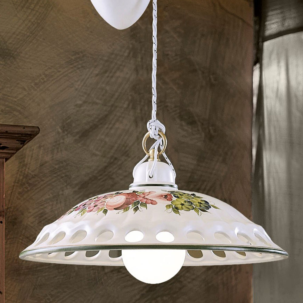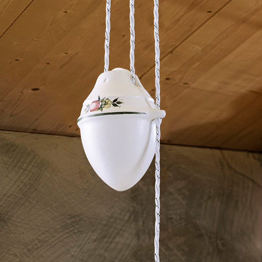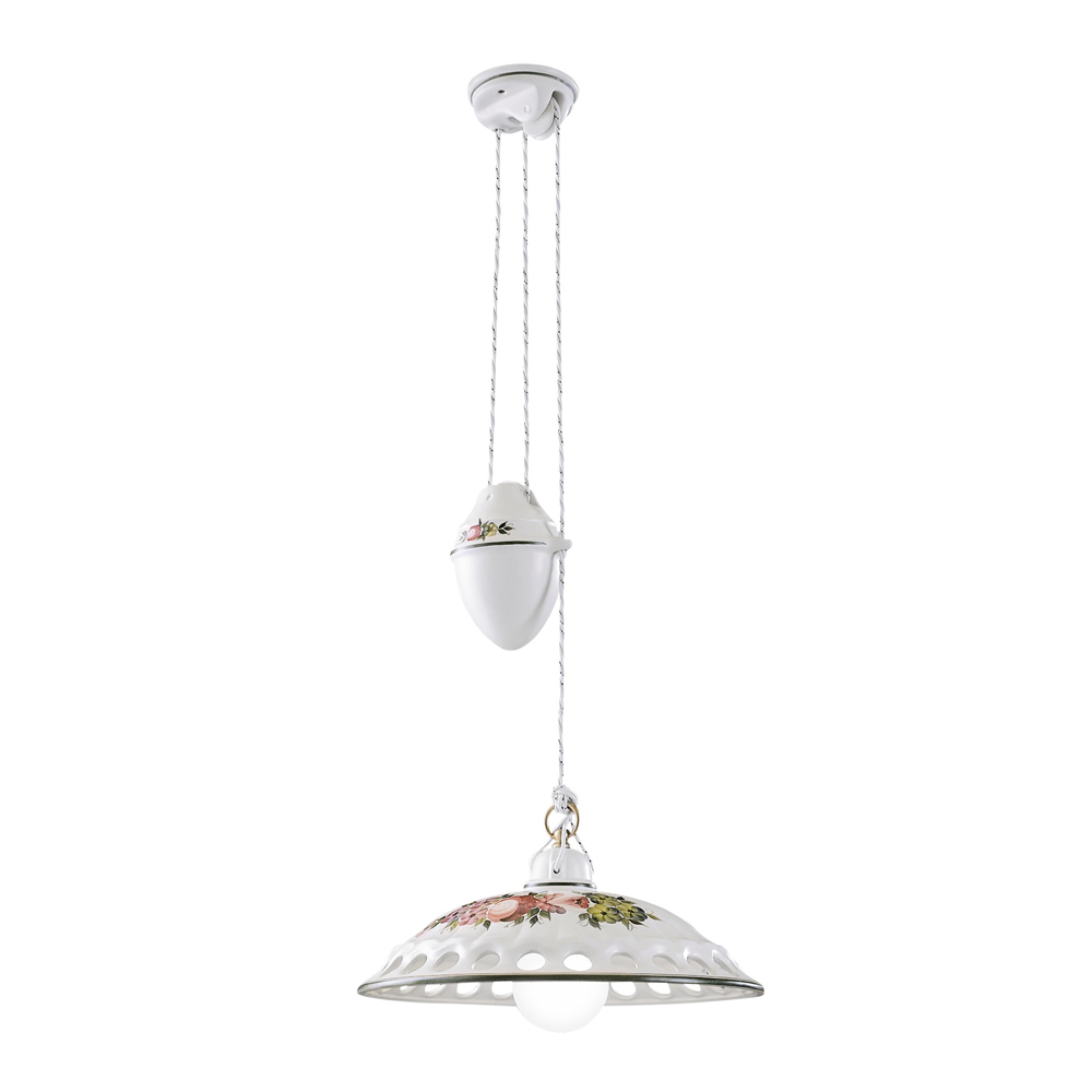 Hangende op- en neergaande lamp in metaal en handgemaakt keramiek met riemlussen, gemaakt in Italië door Ferroluce.