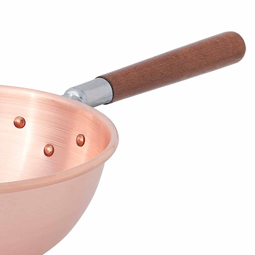 Bastardella in massief mat koper en houten handvat, 36 cm made in Italy.
