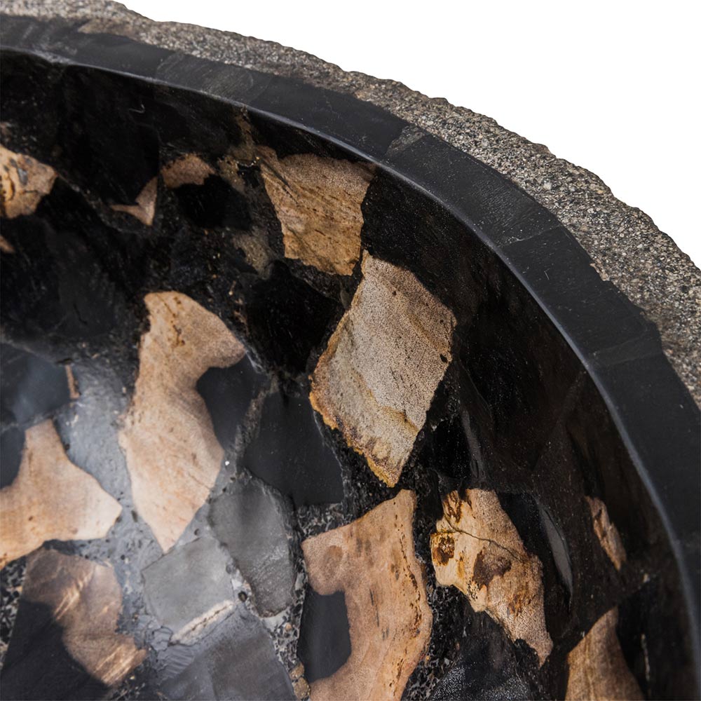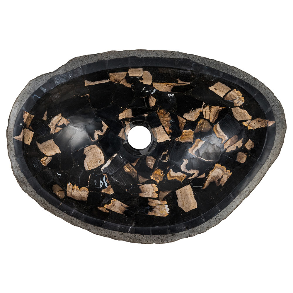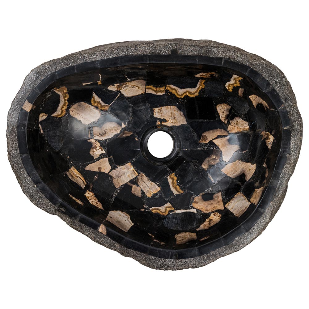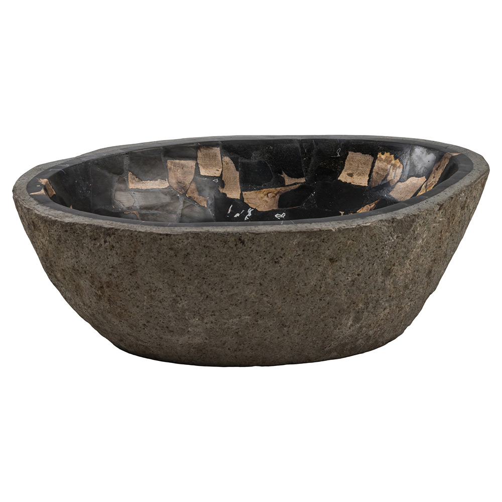 Palizzi is een aanrecht wastafel handgemaakt in riviersteen met een onyx steenmozaïek binnenin.