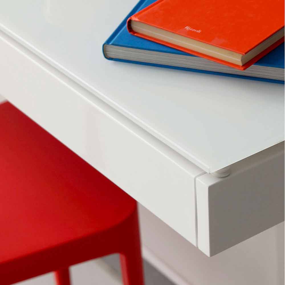 Een aanvulling waarvan de esthetiek het concept van functionaliteit volledig tot uitdrukking brengt en een ideale oplossing biedt voor zowel huiselijke omgevingen als echte kantoren. Het frontpaneel samen met het kabelgat zorgen ervoor dat je draden, stopcontacten en wifi-stations kunt verbergen, waardoor je een schoon en overzichtelijk resultaat krijgt. De gebruikte materialen creëren een avant-gardistisch ontwerp dat de elegantie van kristal combineert met de moderniteit van geverfd metaal en plexiglas om een innovatief, eenvoudig en uiterst veelzijdig inrichtingsidee te creëren.