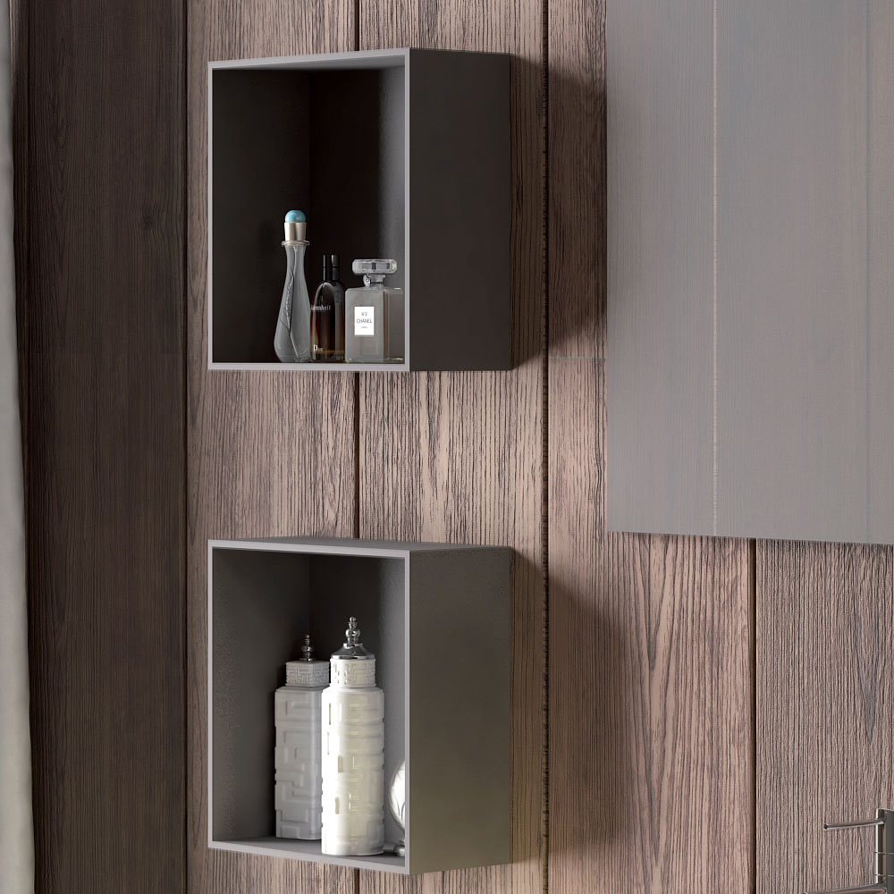 - Drie vierkante MDF-containers in matte lavagna gelakte afwerking; L36xH36xD18 cm.