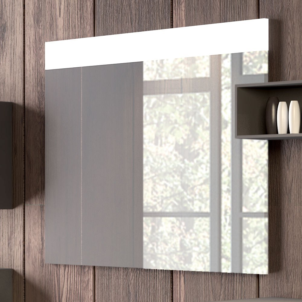 - Een rechthoekige spiegel met geïntegreerd LED-licht; L90xH72xD4 cm;