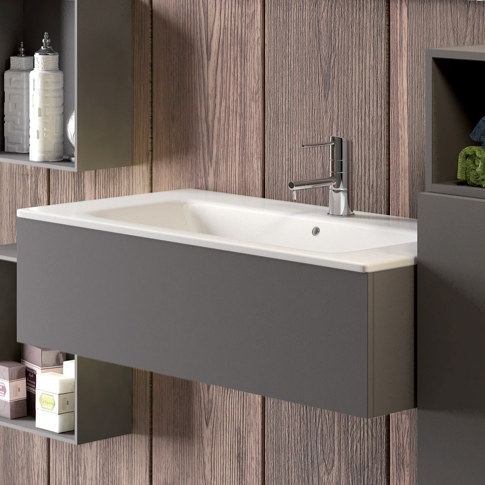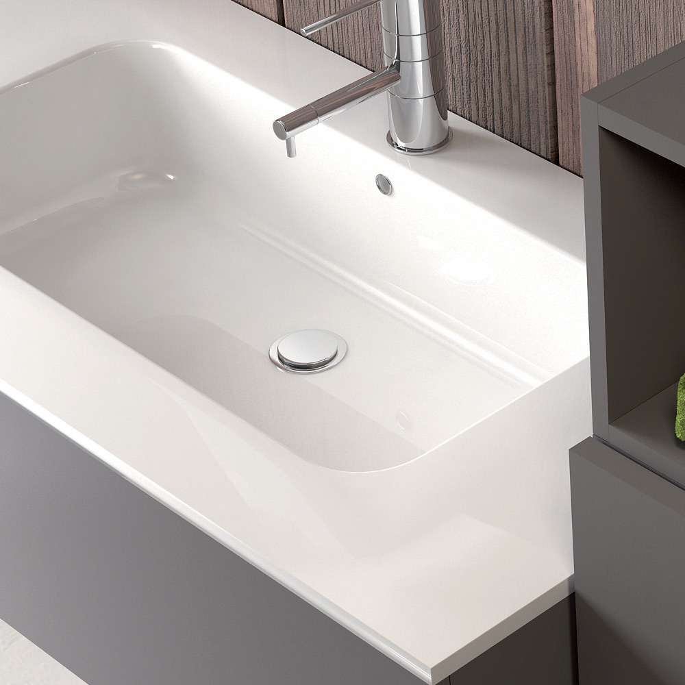 - Een wastafelonderkast in rookgrijs Fenix; L90xH24xD46 cm;