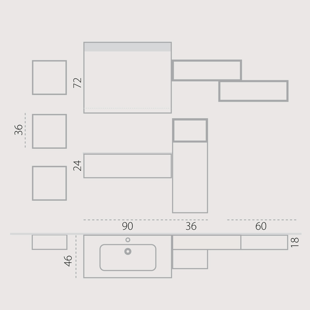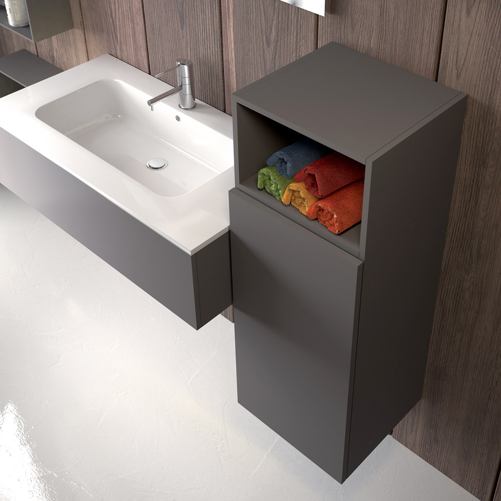 Napoli is een set hangende badkamermeubels gemaakt met verschillende materialen en afwerkingen en met de mogelijkheid tot talloze combinaties dankzij de verschillende elementen, voor een resultaat van flexibele geometrieën voor een badkamer buiten de gebruikelijke patronen.