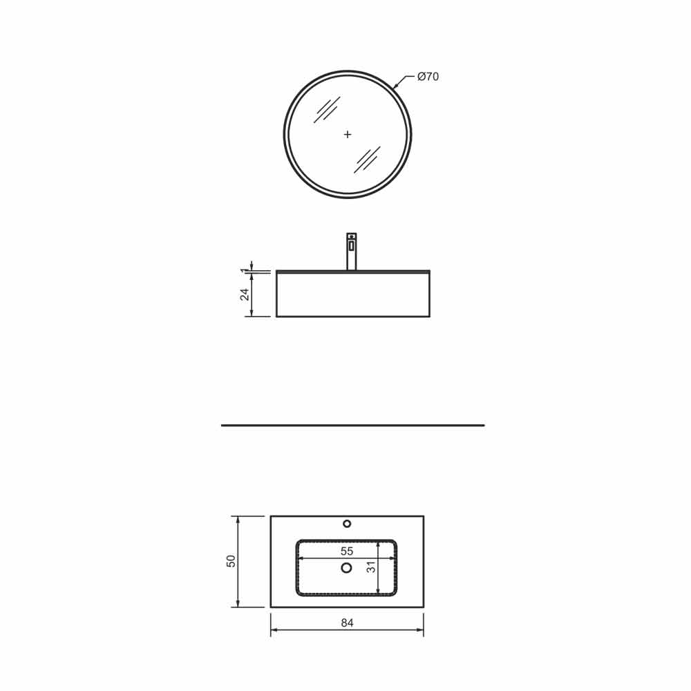 De samenstelling omvat:- wastafel voet cm. 84x24x50,