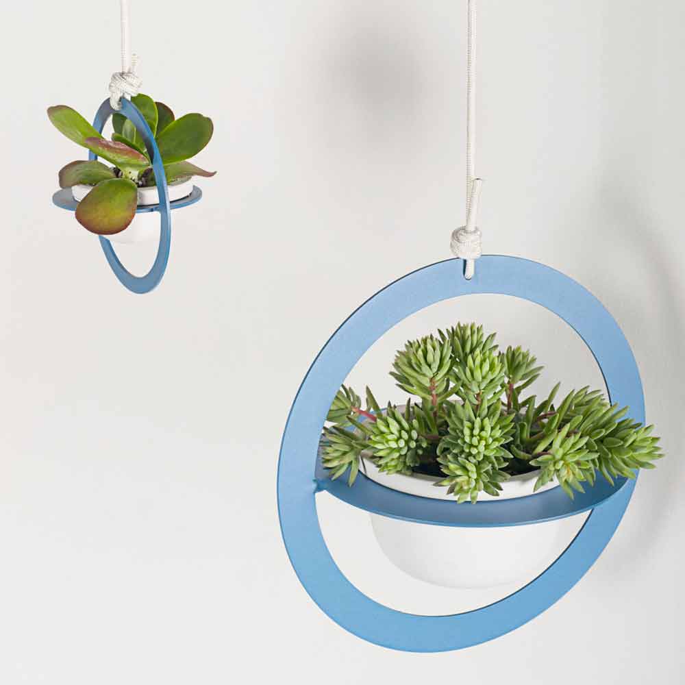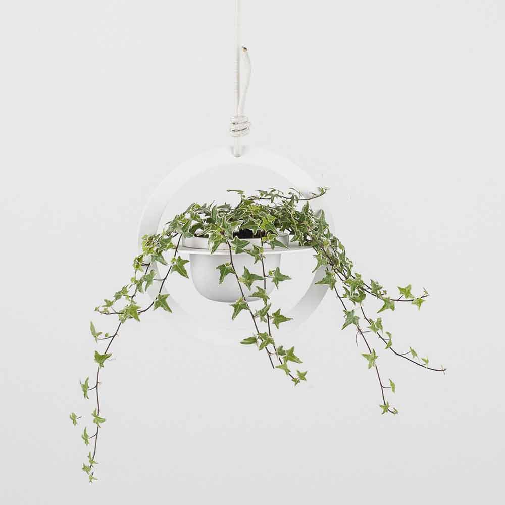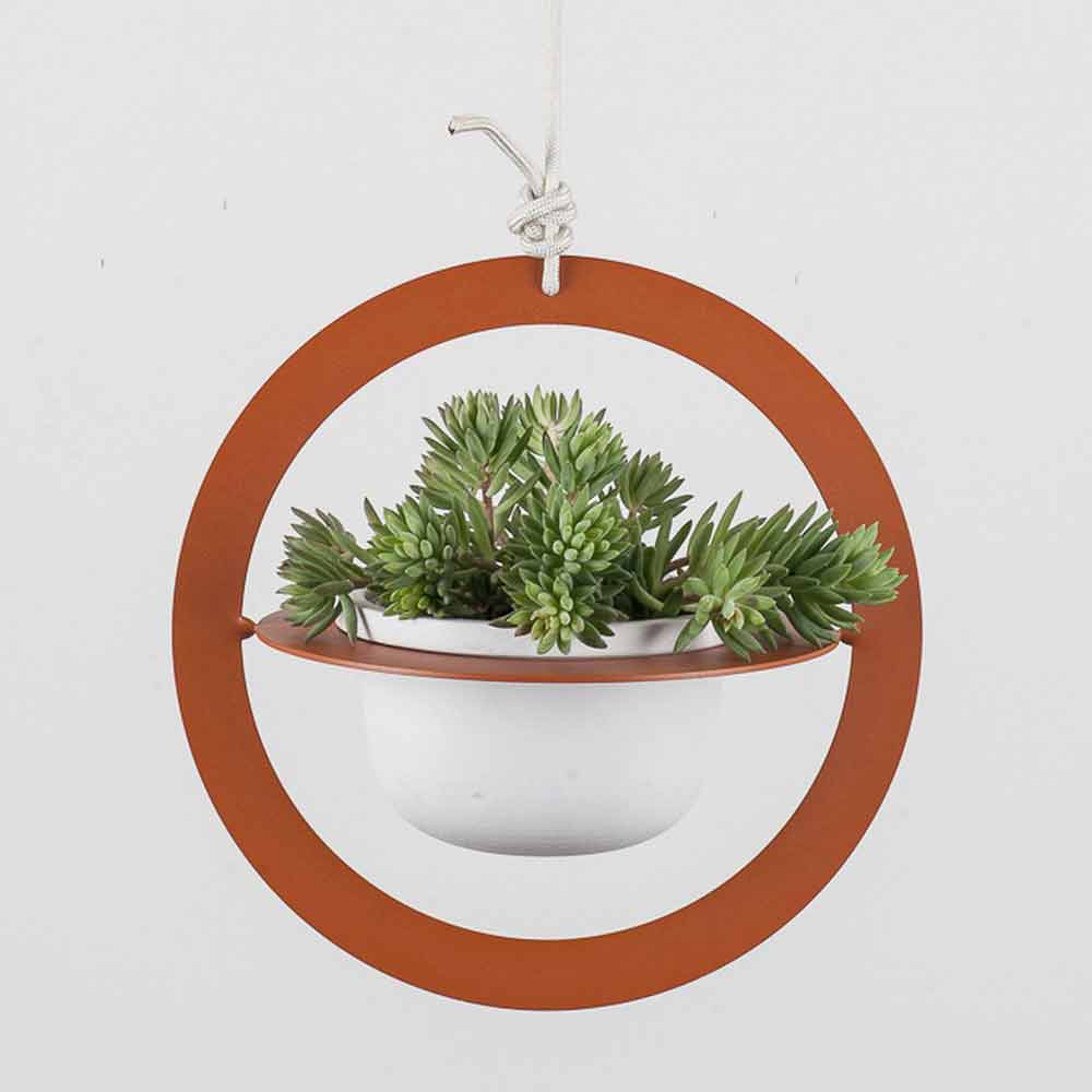 Hangende plantenpot gemaakt van staal en Made in Italy design keramiek.