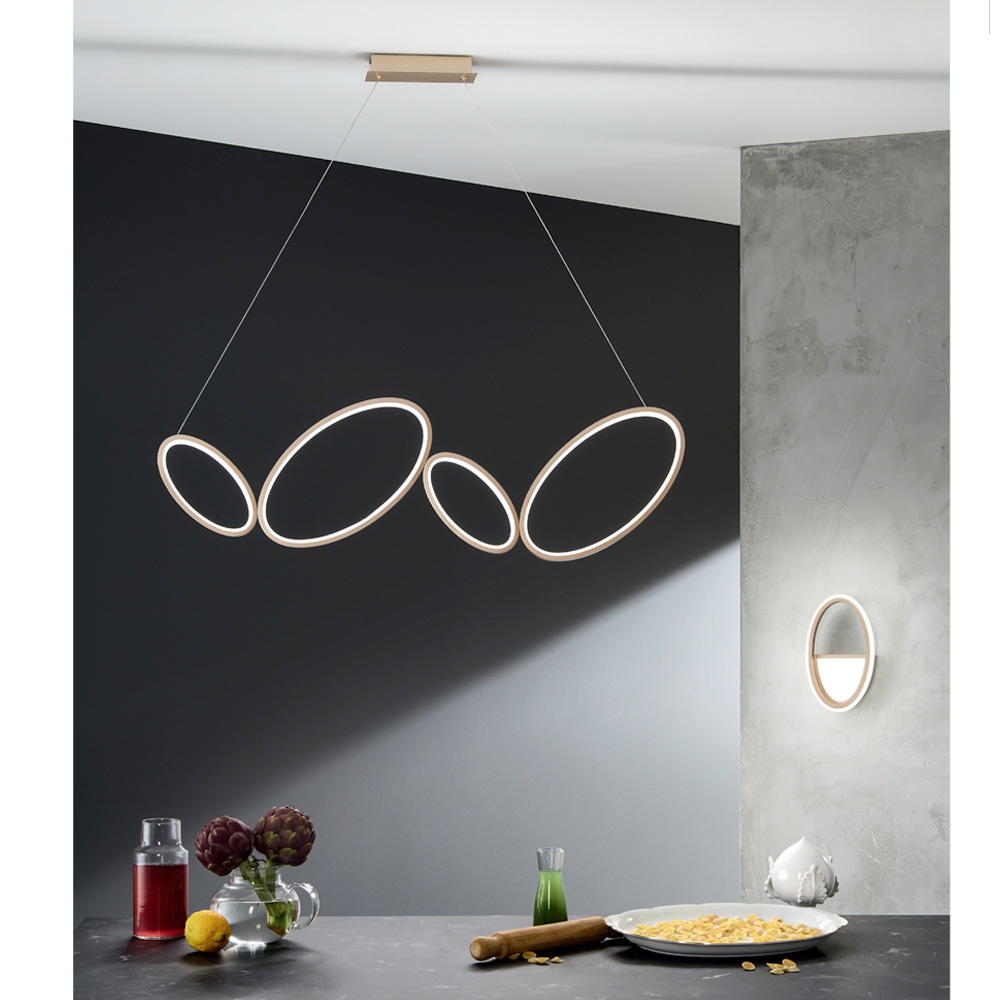 verfijnd en innovatief ontwerp dat in staat is om het middelpunt van de aandacht te veroveren in huishoudelijke ruimtes zoals eetkamers, keukens, woonkamers of slaapkamers. bed met modern meubilair. De prachtige gouden afwerking die de hele structuur onderstreept, geeft het product zijn