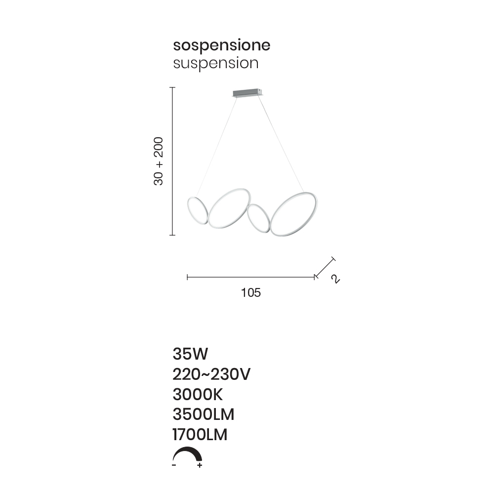 Metalen hanglamp met diffusor van acryl en siliconen.