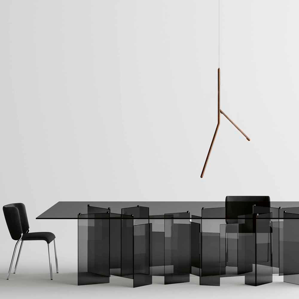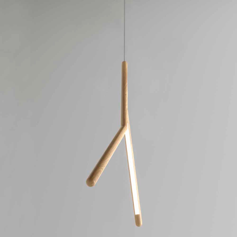 Deze lamp combineert het vakmanschap van massief hout met lichttechniek. Het delicate grafische teken wordt benadrukt in installaties met meerdere lampen en wordt de absolute hoofdrolspeler van de omgeving.
