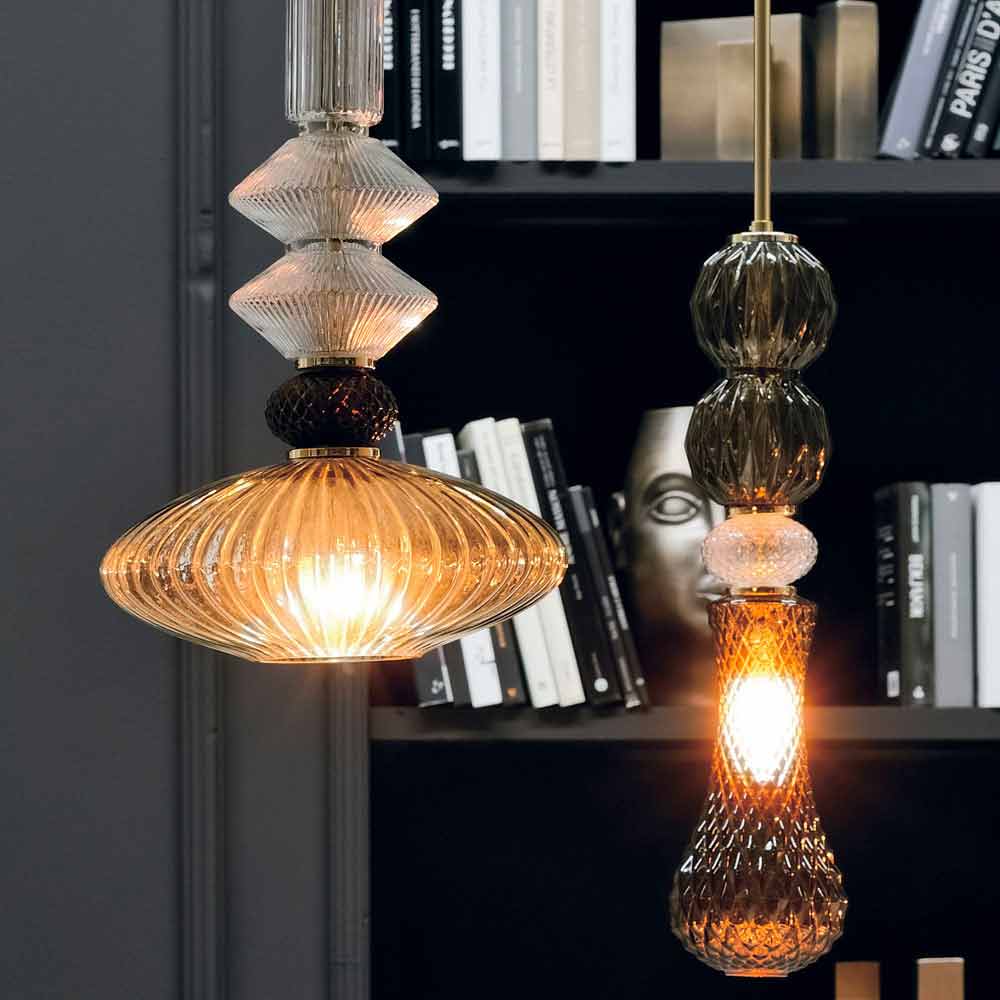Exclusieve hanglamp van Muranoglas met antieke decoratie, gouden details en antracietkleurige stoffen kabel , made in Italy. Uit de perfecte fusie tussen moderniteit en traditie komt dit prachtige inrichtingsidee dat in staat is om te verlichten en een prachtige warme en gastvrije sfeer te creëren en tegelijkertijd de esthetiek van de kamer te verrijken dankzij een tijdloze elegantie die wordt gegeven door Murano-glas, een materiaal van hoge kwaliteit. en met een bijzonder verfijnde persoonlijkheid . Het spel van geometrische vormen en verschillende kleuren creëert een dynamisch effect dat het uiterlijk van de lamp compleet maakt en de waarde en waarde ervan benadrukt.