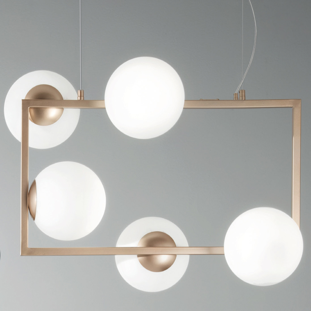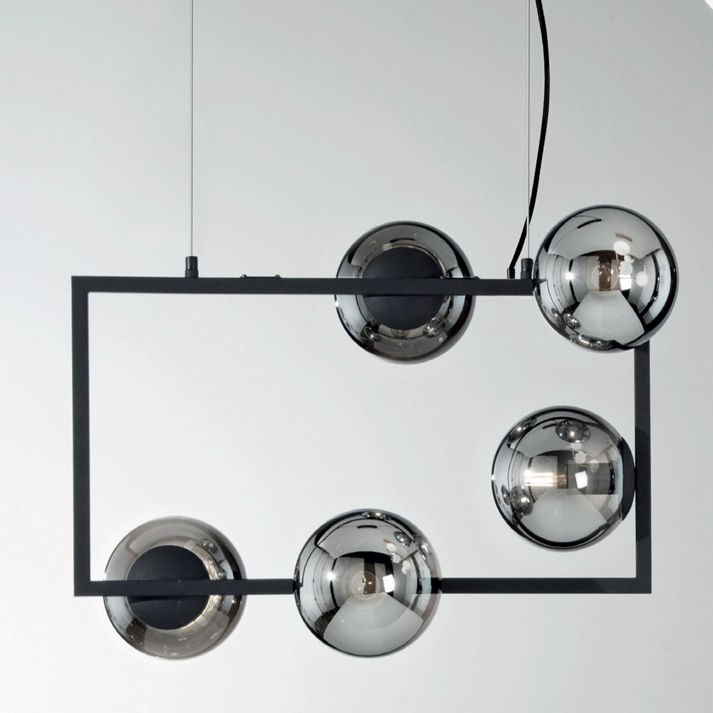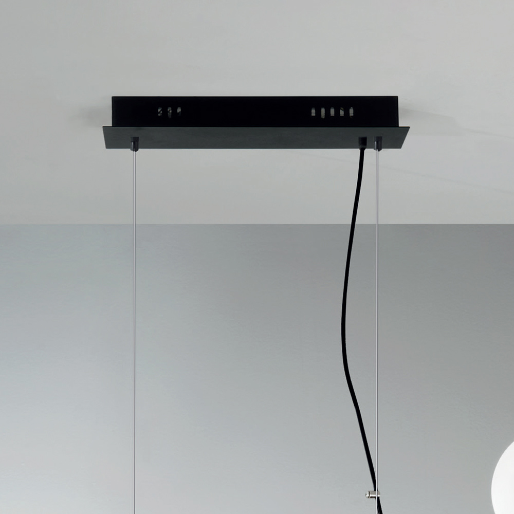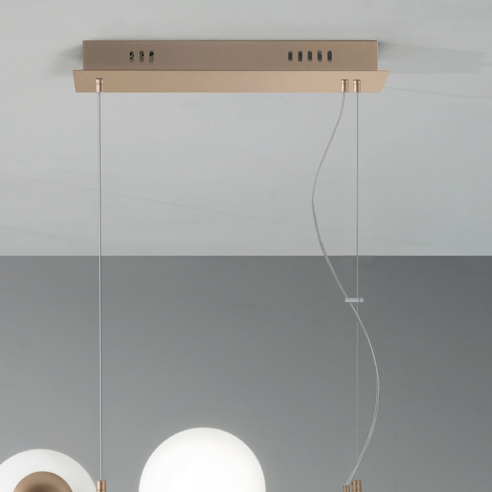 geblazen glazen diffusers compleet met in hoogte verstelbare kabels. Uit de perfecte combinatie van de moderne touch van metaal en de tijdloze elegantie van geblazen glas, is een