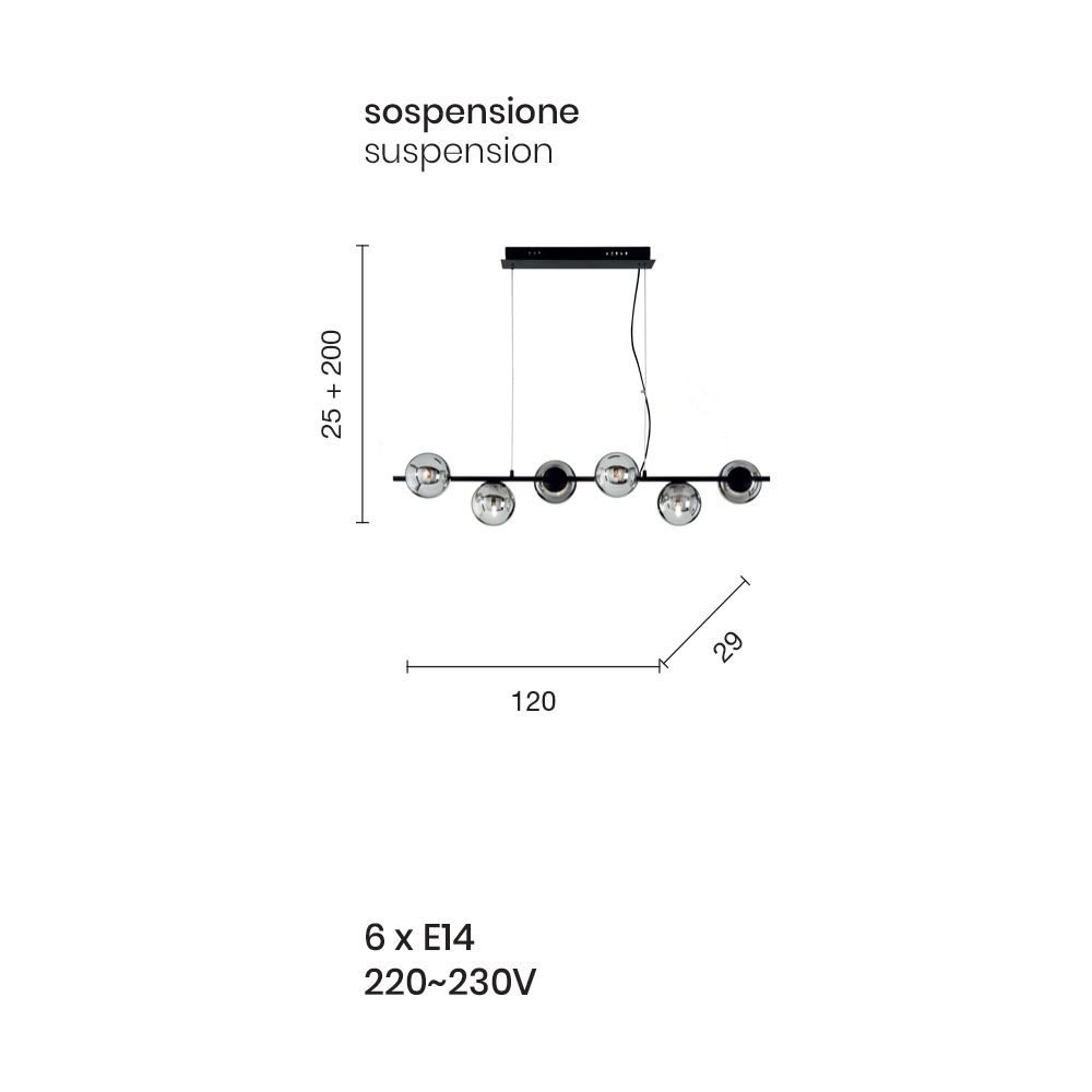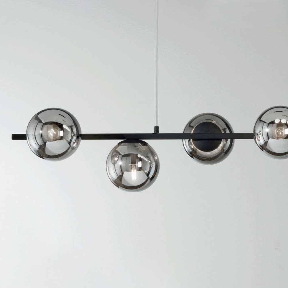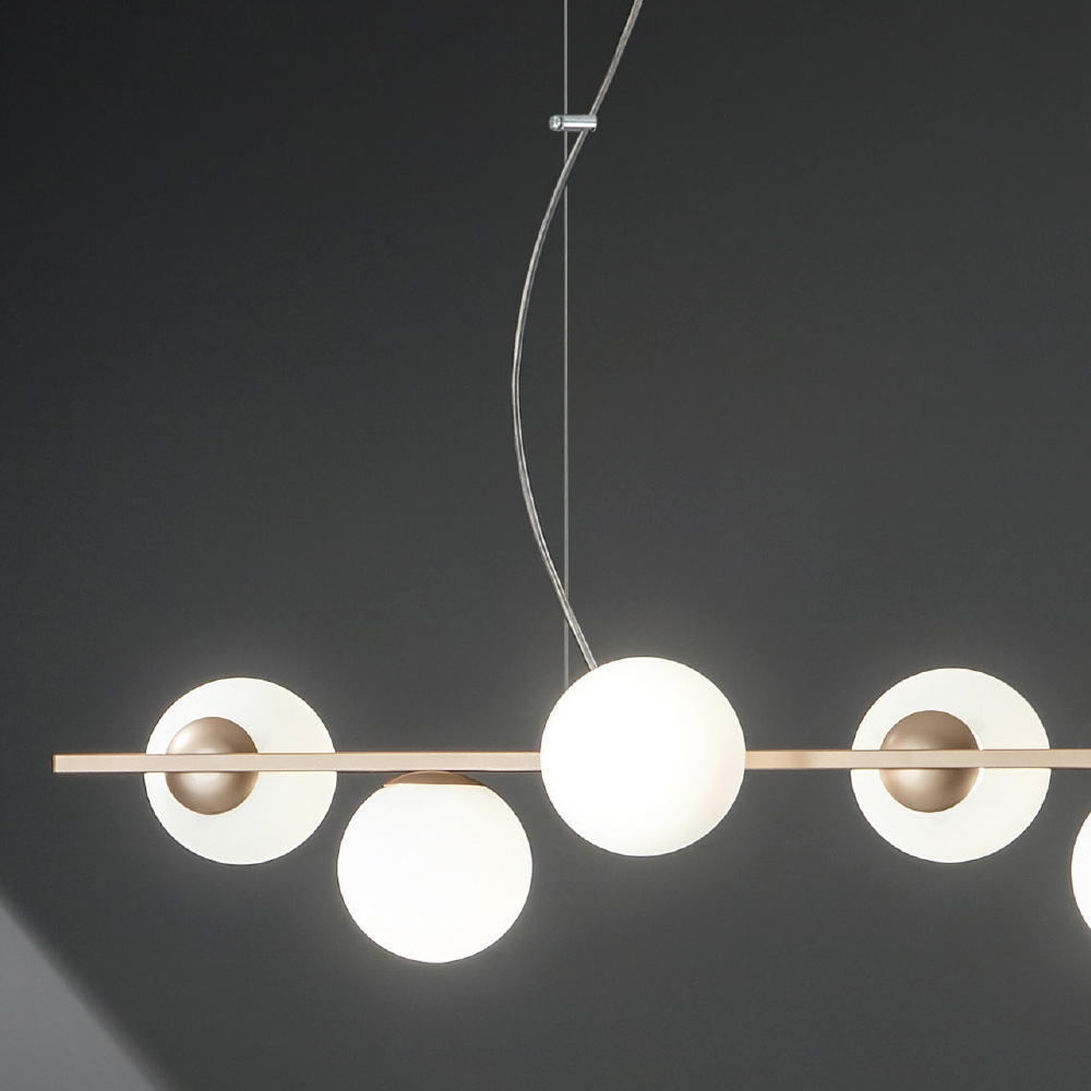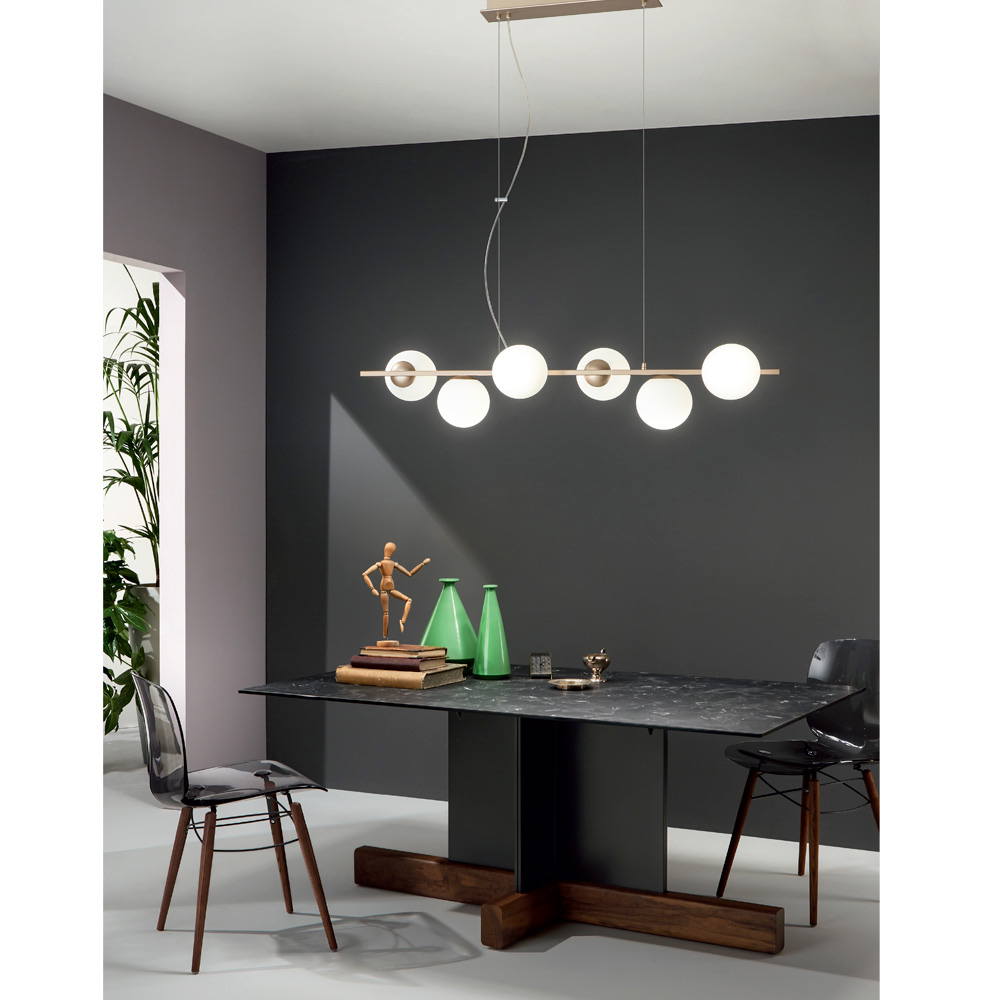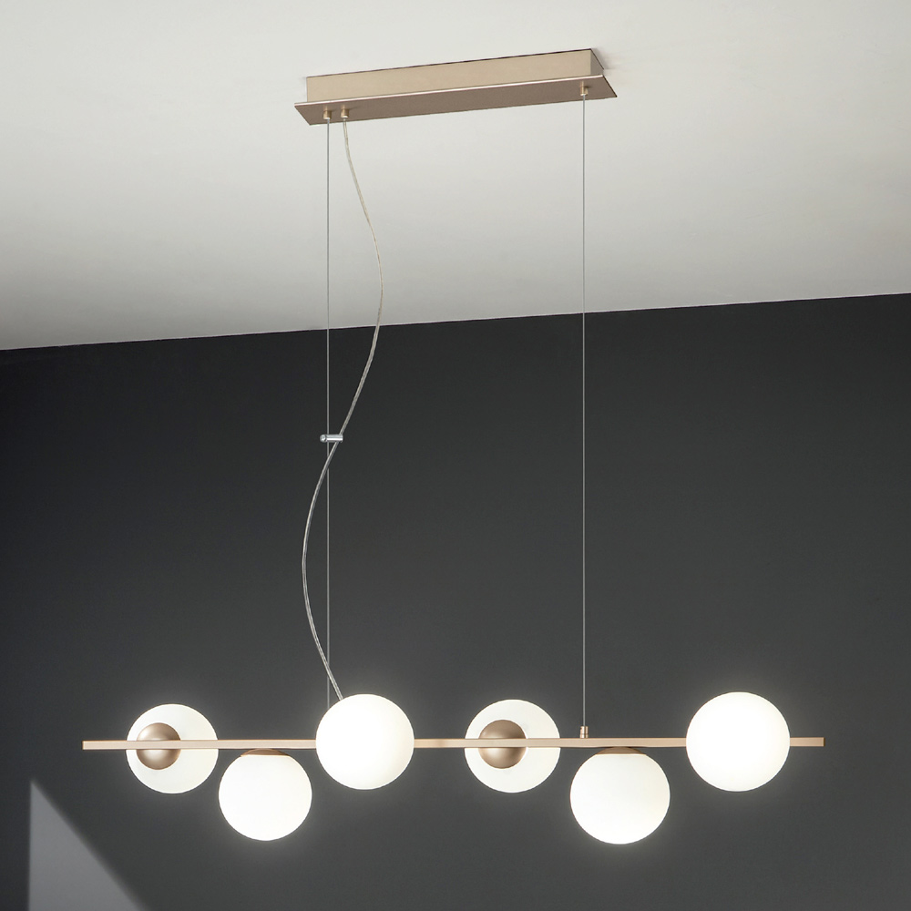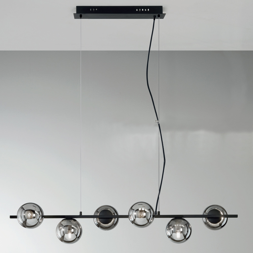 Pendellamp met 6 lampjes met metalen structuur en bolvormige