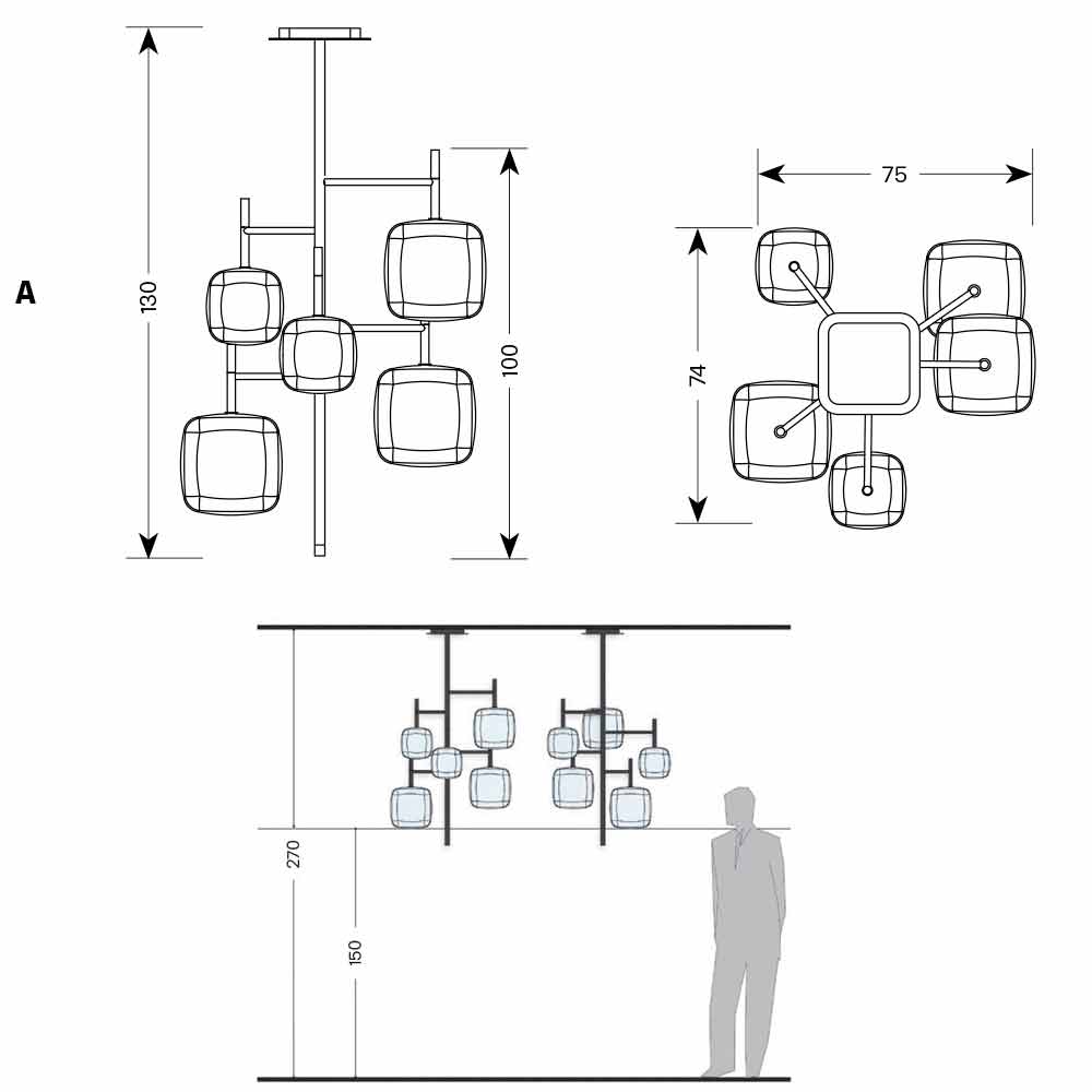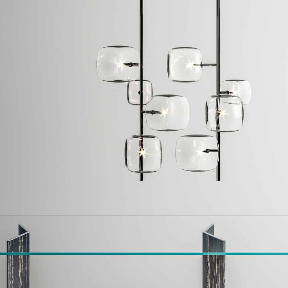 transparant geblazen pyrexglas, afhankelijk van de gekozen maat. Ook ideaal voor meerdere installaties op verschillende hoogtes, waardoor het productontwerp