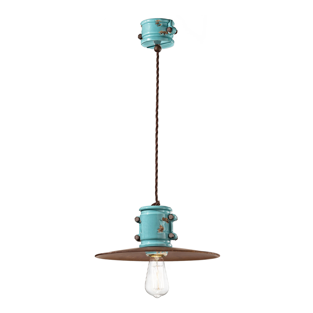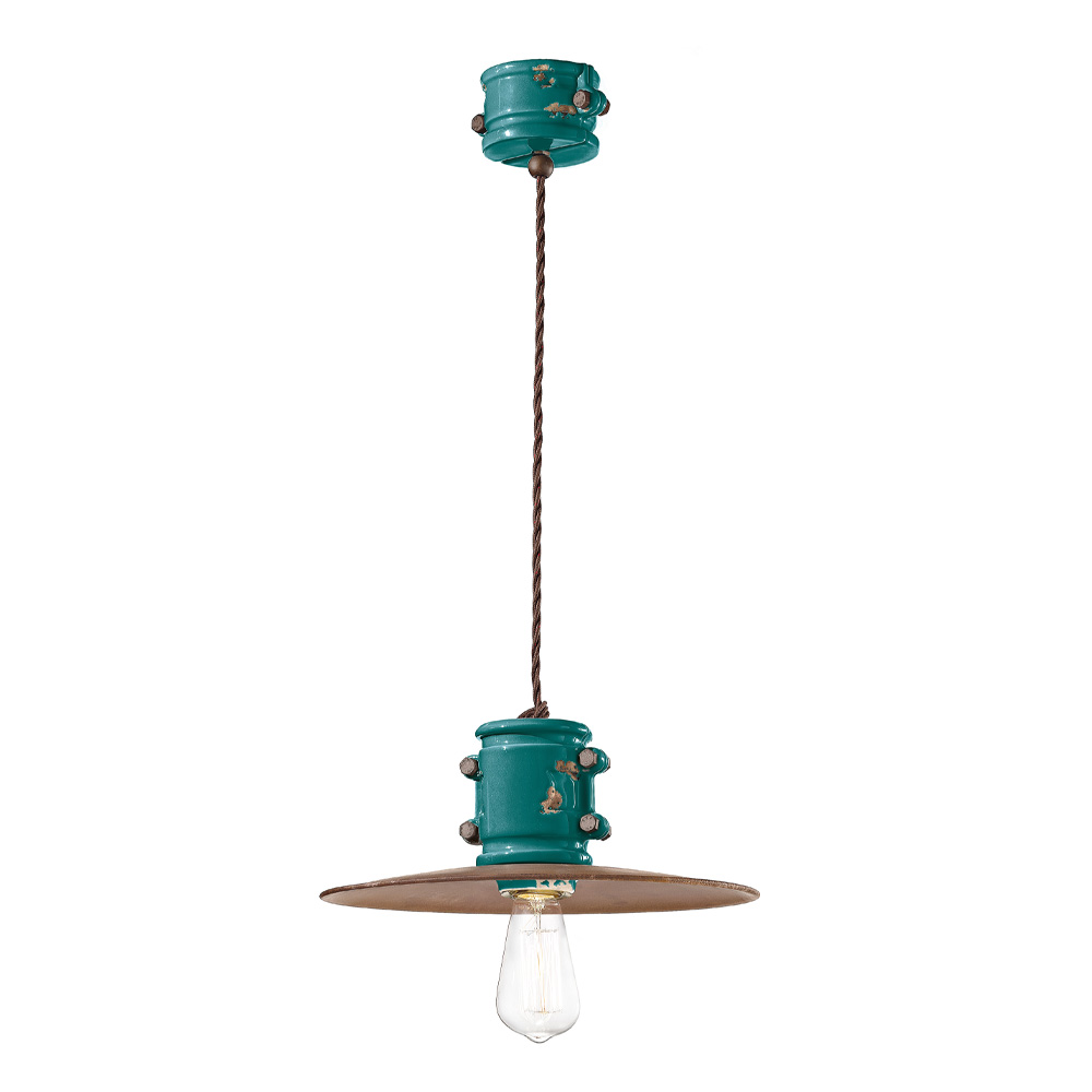 Handgemaakte hanglamp in keramiek en metaal van industrieel design gemaakt in Italië door Ferroluce.