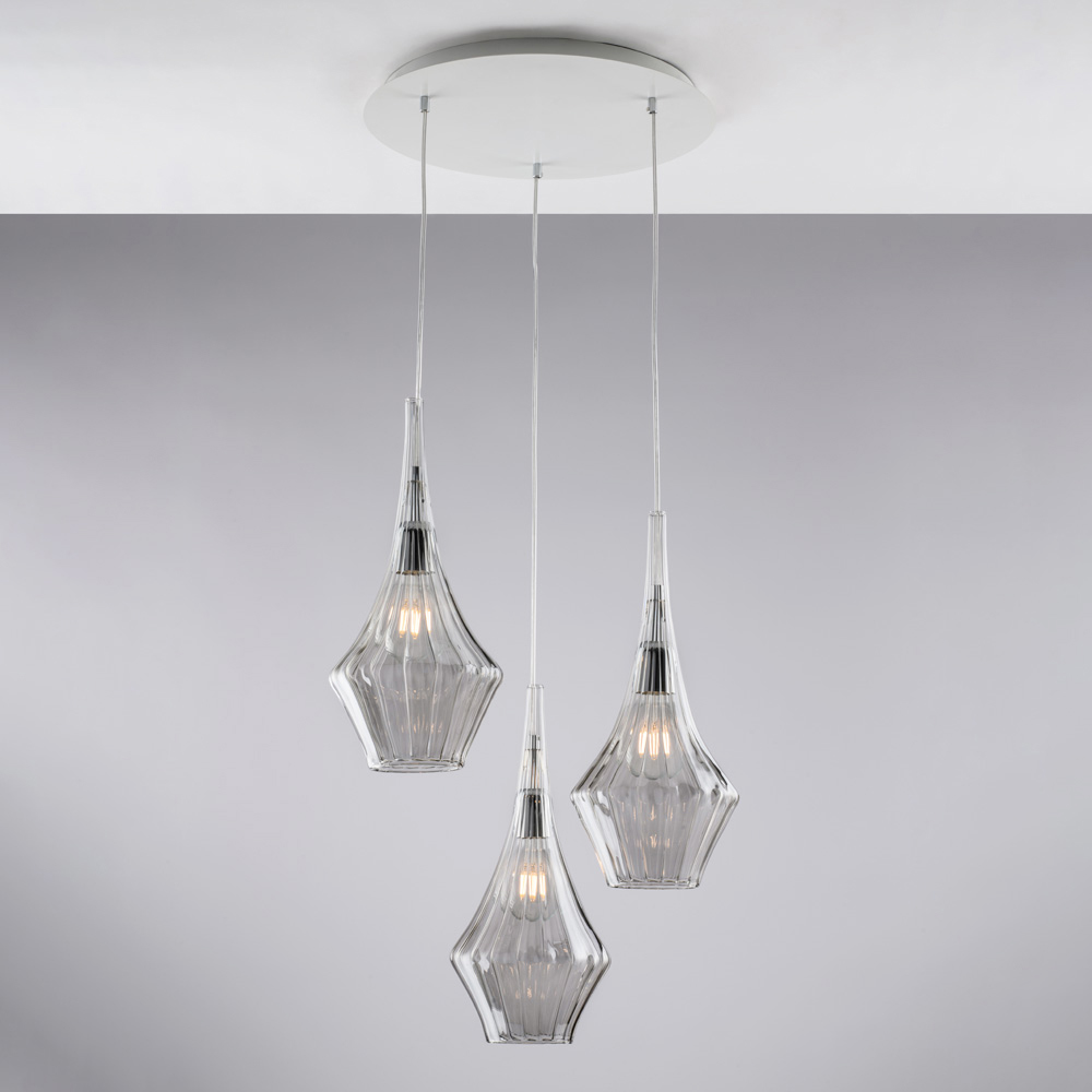 Deze hanglamp is verkrijgbaar in transparant , amberkleurig of grijs en stelt u in staat de sfeer van uw ruimte aan te passen: licht en luchtig in de transparante versie, warm en omhullend in amberkleurig, modern en elegant in grijs. Hij is ideaal voor woonkamers , eetkamers , keukeneilanden , open ruimtes en designprojecten .