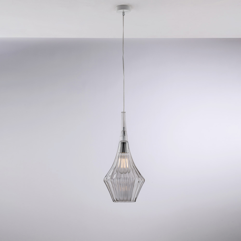 Deze hanglamp is verkrijgbaar in transparant , amberkleurig of grijs en stelt u in staat de stijl van uw ruimte aan te passen: helder en minimalistisch in de transparante versie, warm en sfeervol in amberkleurig, modern en elegant in grijs. Perfect voor keukens , kookeilanden , eettafels , gangen , leeshoekjes en designruimtes , zowel afzonderlijk als in combinatie.