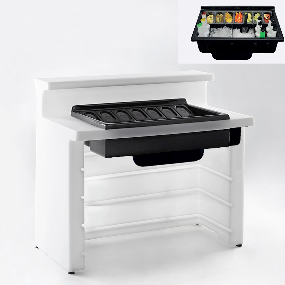 Het is gemaakt van helderwit polyethyleen en is zeer veelzijdig dankzij de verschillende optionele componenten die kunnen worden gekozen om er een nog functioneler en completer meubelstuk van te maken. Deze omvatten: