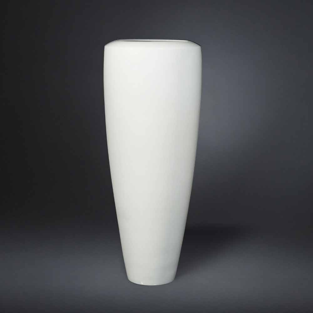 Hoge decoratieve vaas in mat wit handgemaakt keramiek Made in Italy.