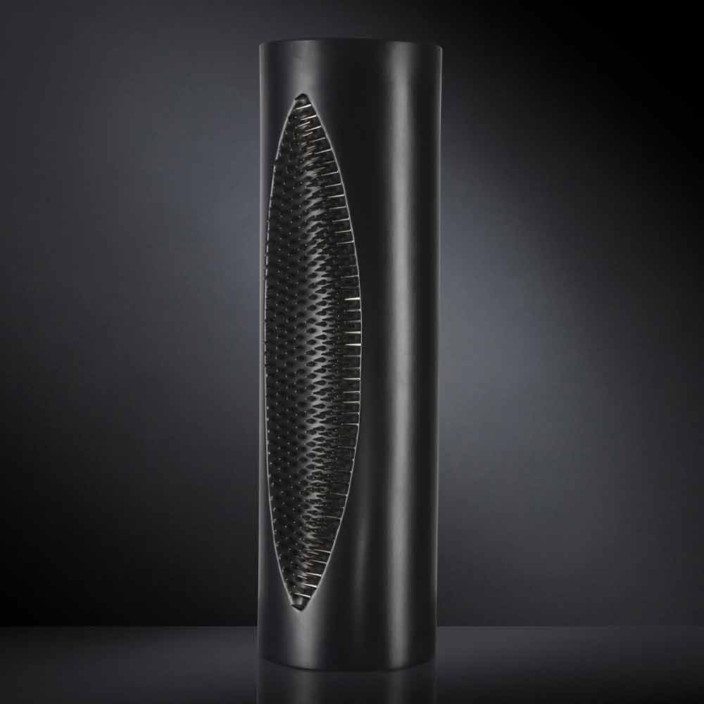 Hoge decoratieve vaas in mat zwart keramiek handgemaakt in Italië.