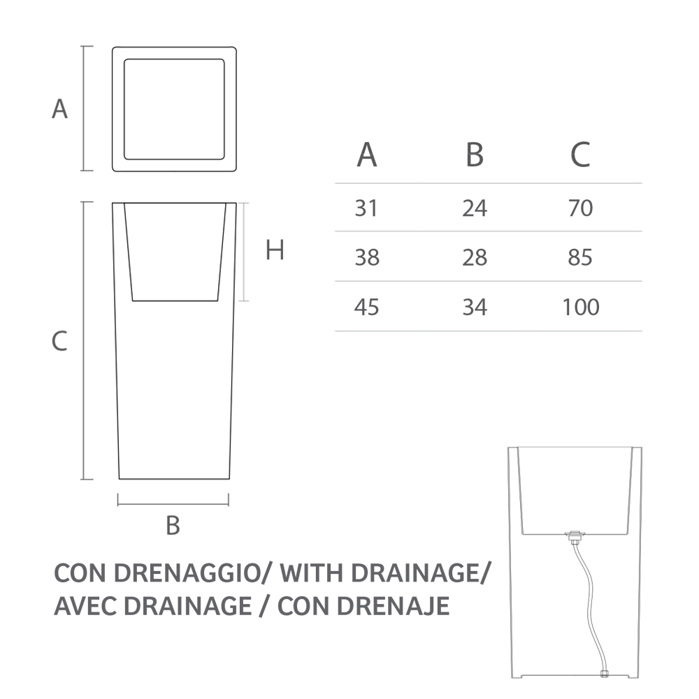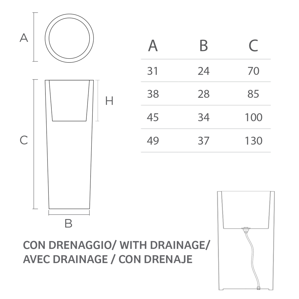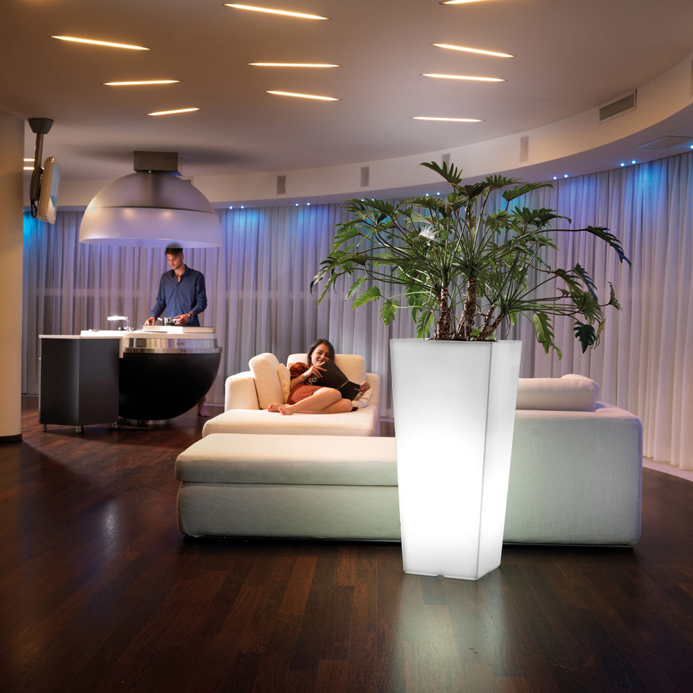De structuur omvat een waterafvoerkit waarmee deze vaas zowel binnen- als buitenruimtes kan decoreren zonder dat dit ten koste gaat van het praktische en functionele aspect. Tenslotte is deze binnenvaas voorzien van een geïntegreerd LED-licht om een extra vleugje stijl te geven aan binnenruimtes maar ook aan buitenomgevingen tijdens evenementen.