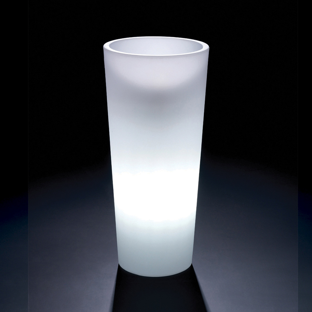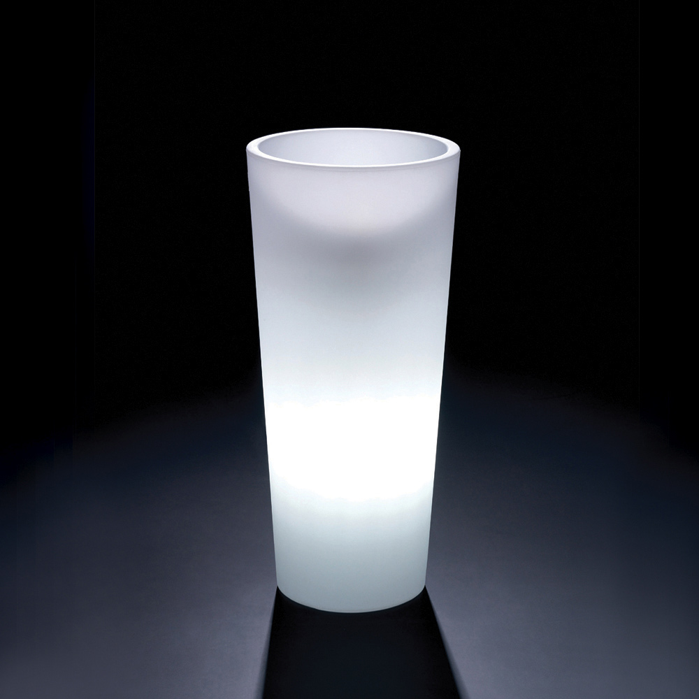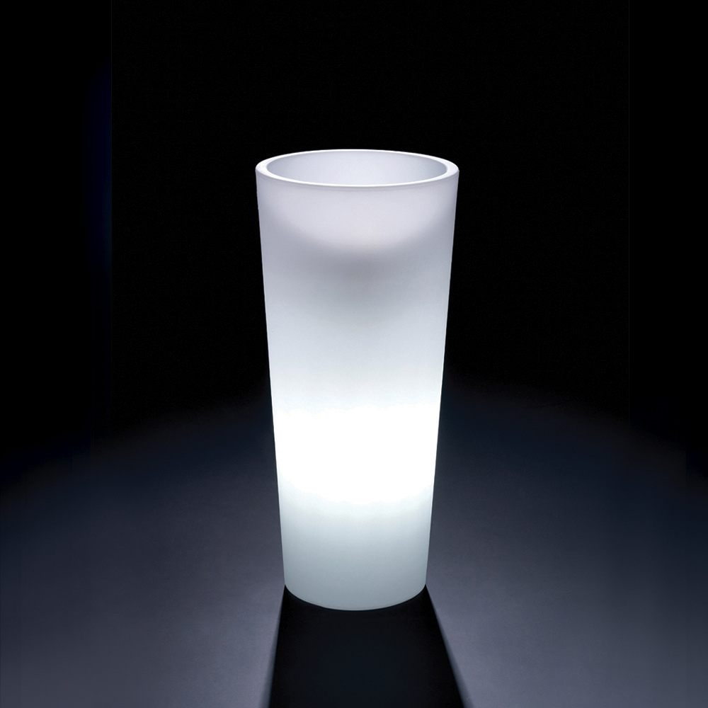 Deze lichtgevende vaas voor binnen , gemaakt in polyethyleen , is verkrijgbaar in verschillende maten om de stijl van uw woonruimte te verrijken en te revolutioneren met een extravagant karakter. De beslissende en essentiële lijnen geven een klassieke uitstraling aan dit meubelaccessoire dat verkrijgbaar is in verschillende vormen en maten, zonder echter de elegantie en functionaliteit ervan te verdoezelen.
