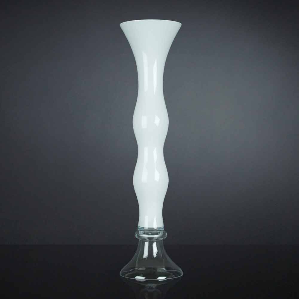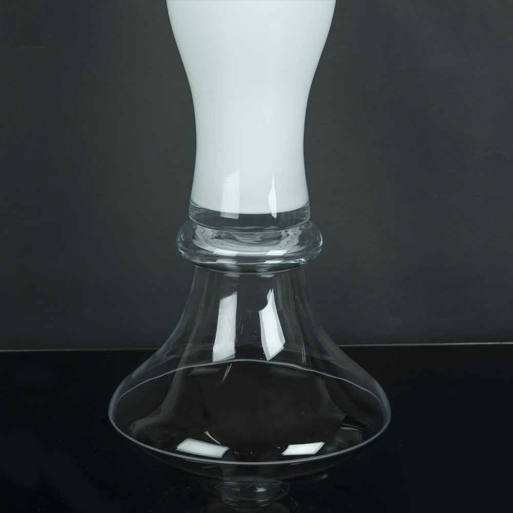 Hoge vaas voor interieurs in wit glas met transparante voet Made in Italy.