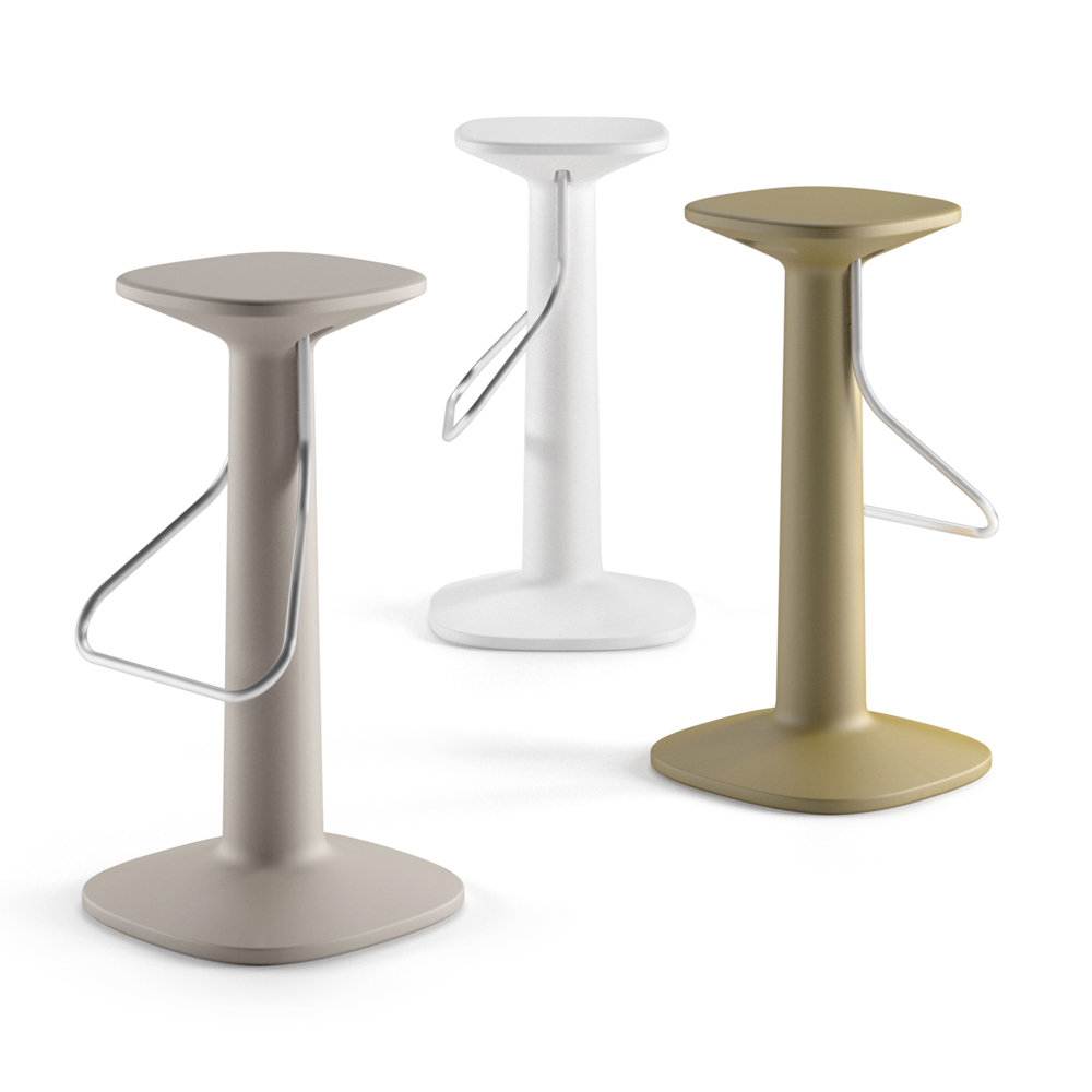 Hoge design kruk in polyethyleen met voetsteun Made in Italy.